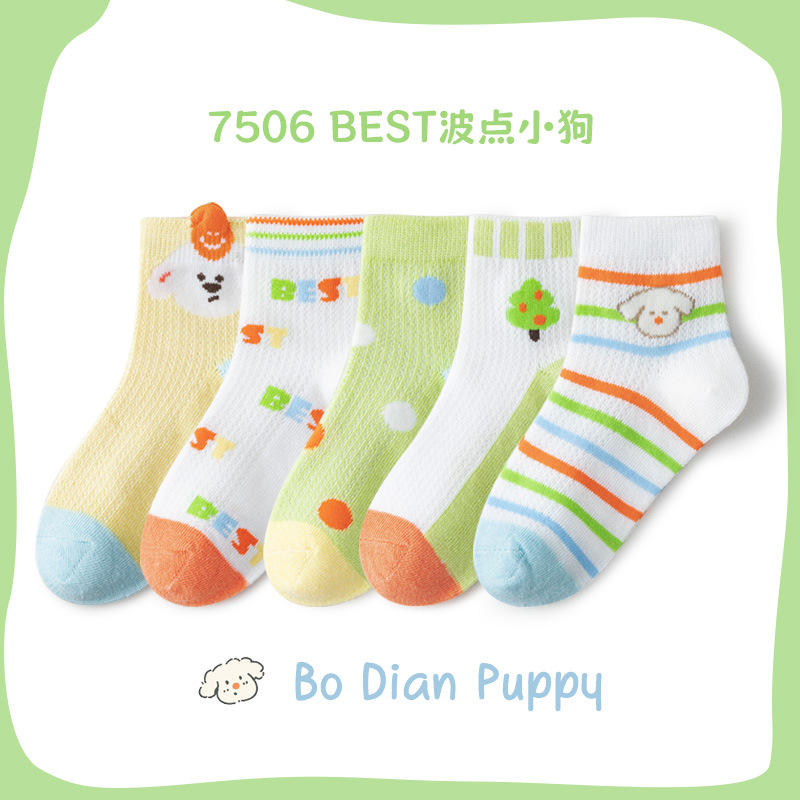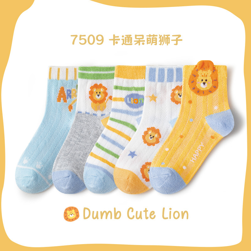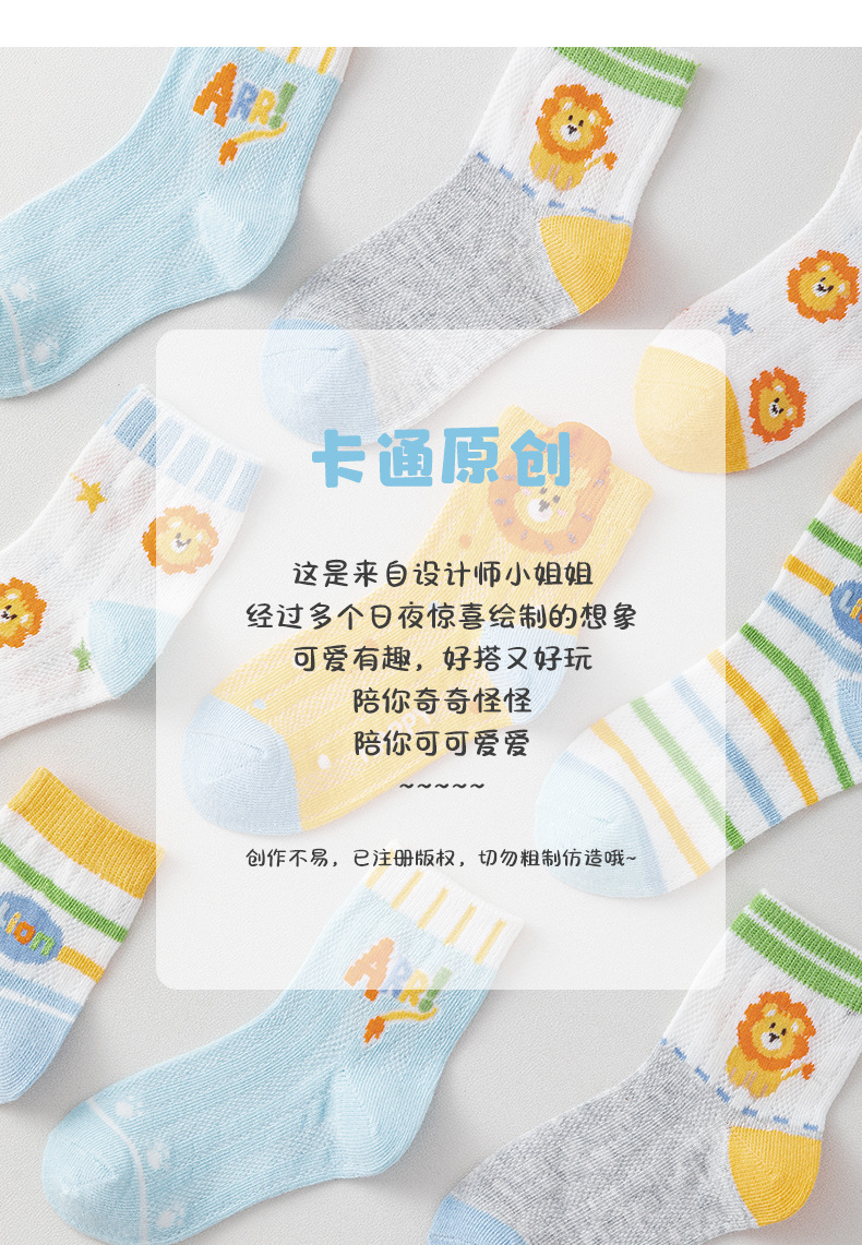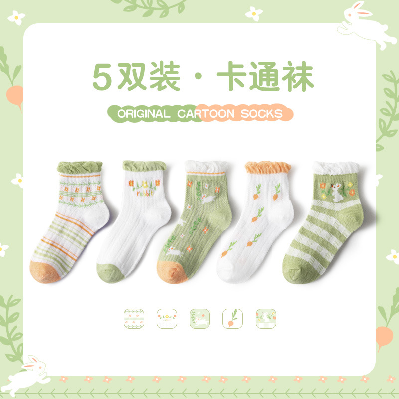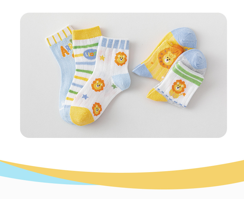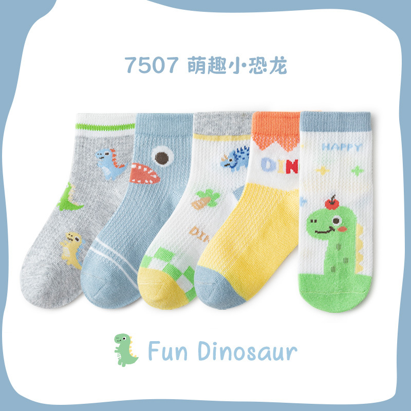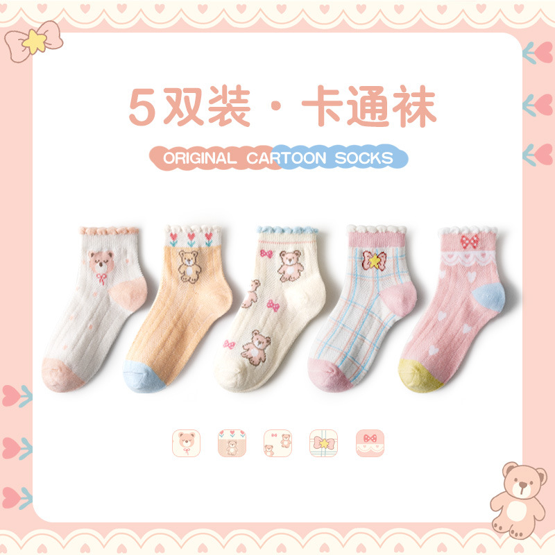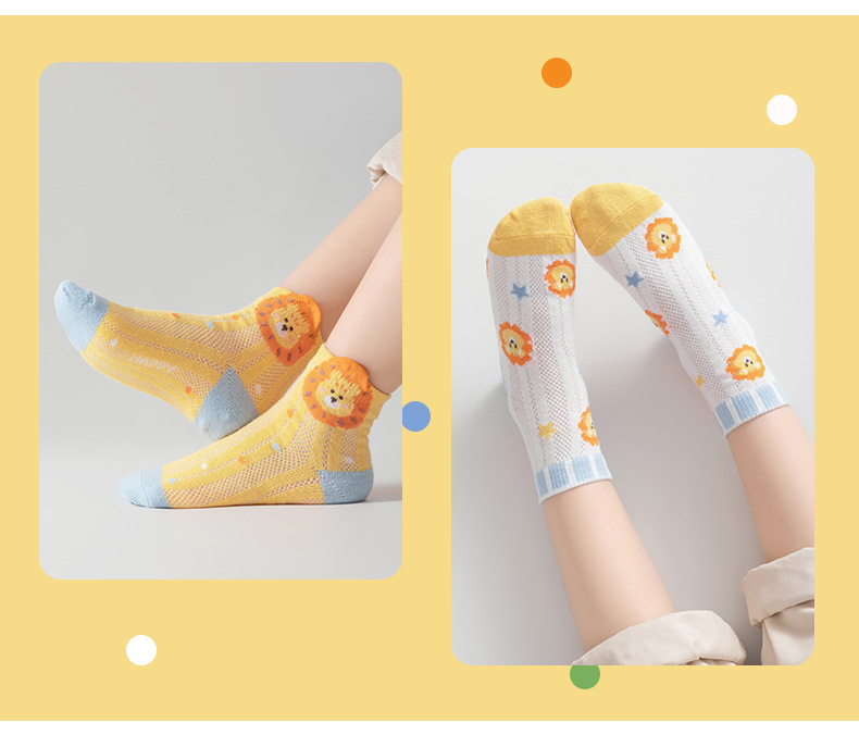 2024 봄과 여름 새로운 어린이 양말 얇은 메쉬 만화 소년 양말 통기성 땀 흡수 중간 튜브 양말 도매스토어 가기