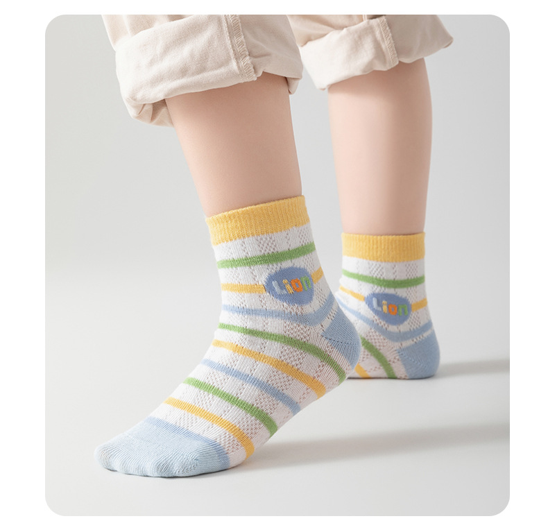 2024 봄과 여름 새로운 어린이 양말 얇은 메쉬 만화 소년 양말 통기성 땀 흡수 중간 튜브 양말 도매