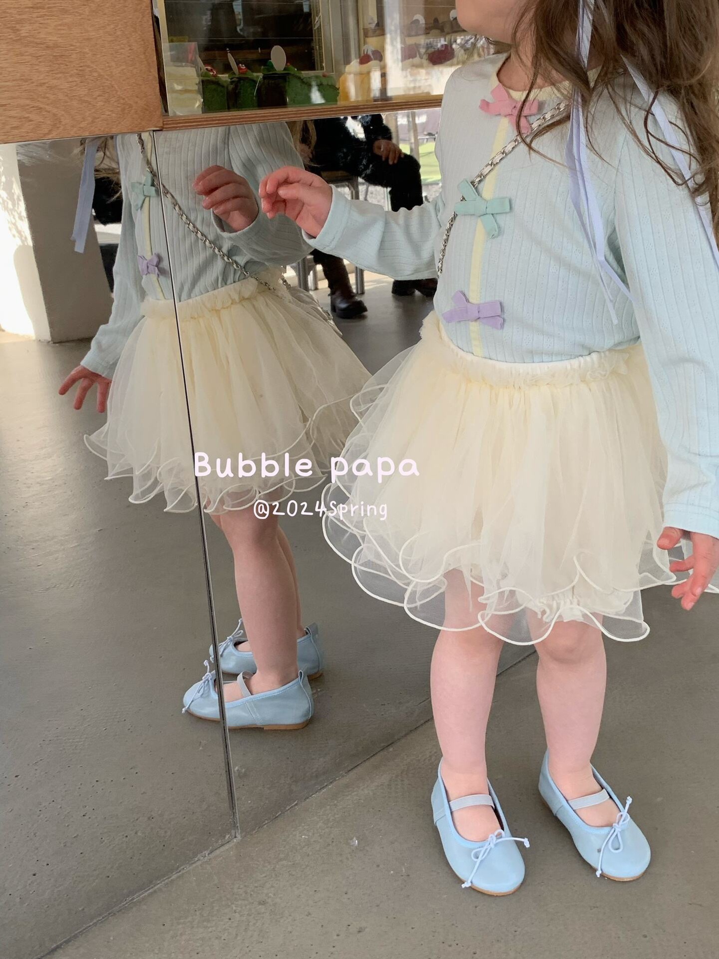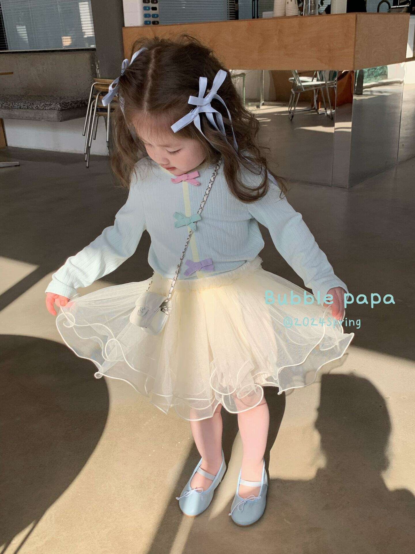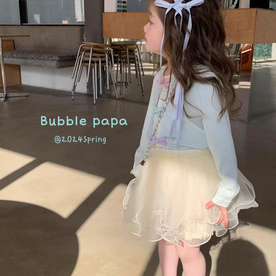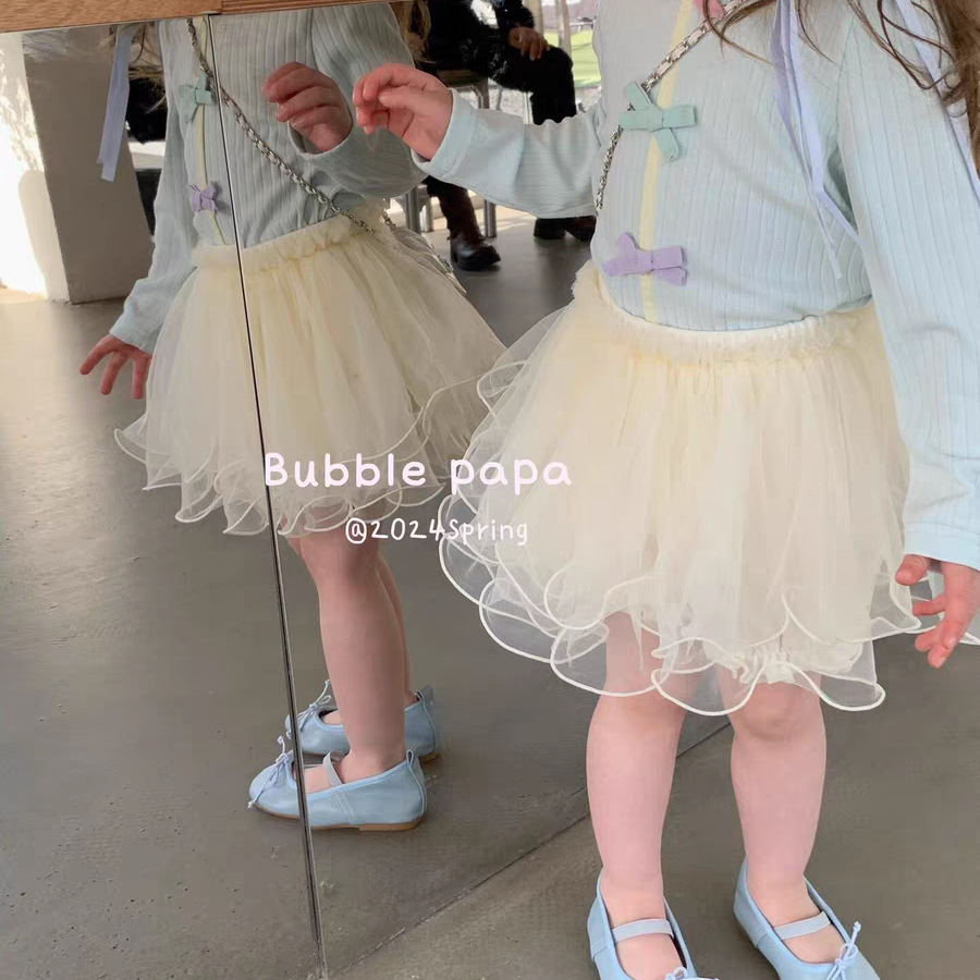 Lingli 25 봄 여름 신상 여아용 반바지 화이트 스커트 거즈 스커트 한국 스타일 스웨트셔츠 귀엽고 달콤한 세트 슈퍼 예쁜스토어 가기