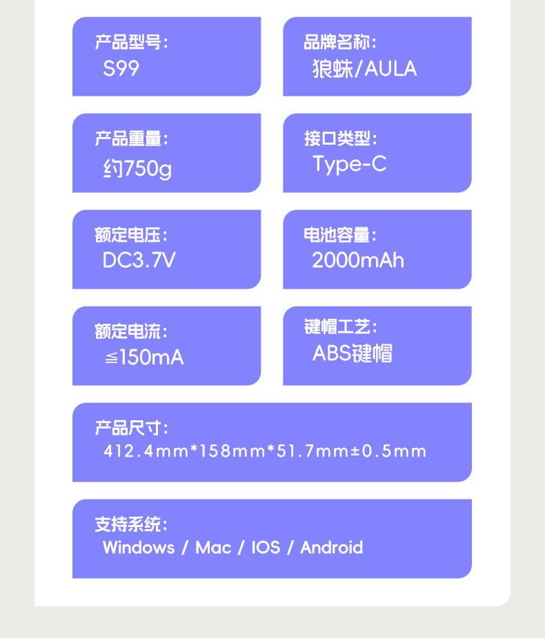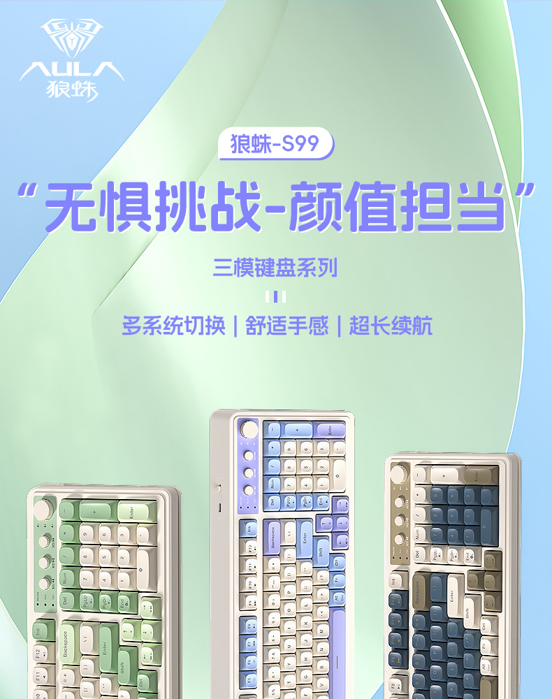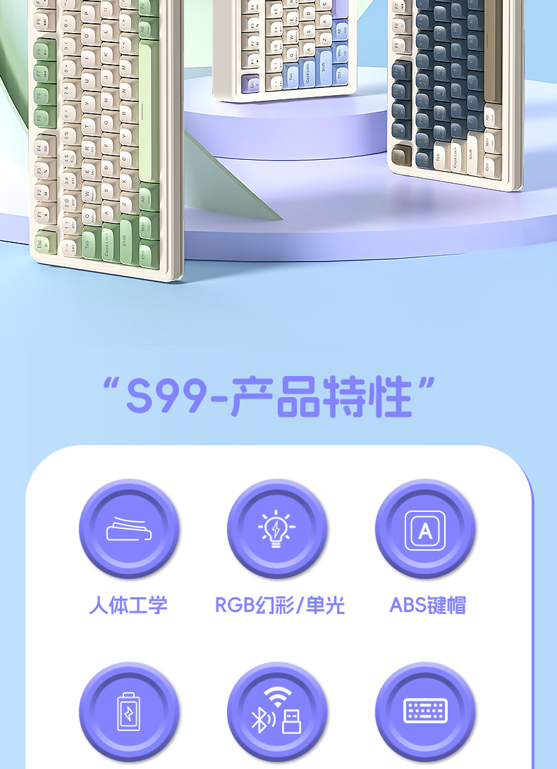 울프스파이더 S99 키보드 무선 블루투스 유선 삼중 모드 기계식 느낌 게임용 사무용 컴퓨터 범용 RGB 조명 효과