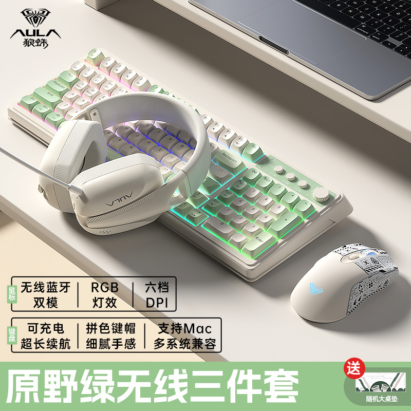 • [필드 그린] 키보드와 마우스 헤드셋 세트