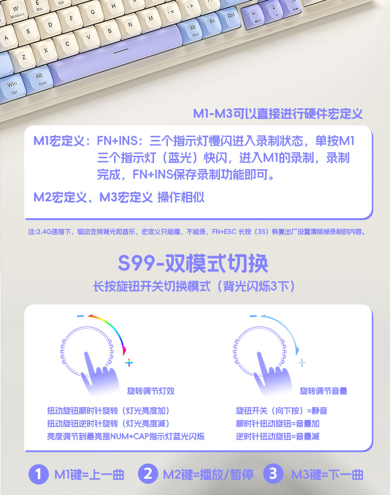 울프스파이더 S99 키보드 무선 블루투스 유선 삼중 모드 기계식 느낌 게임용 사무용 컴퓨터 범용 RGB 조명 효과스토어 가기