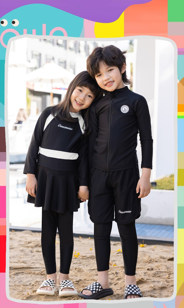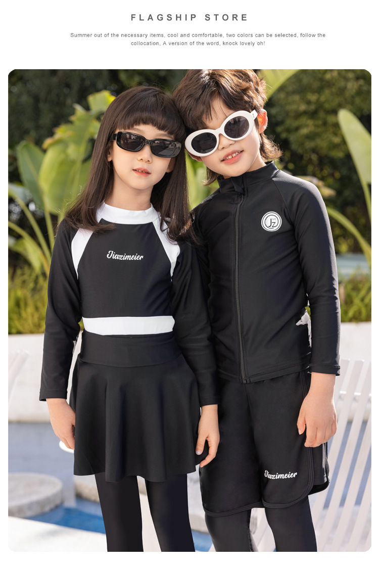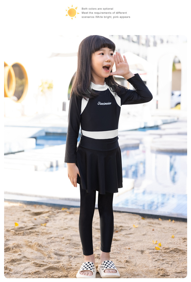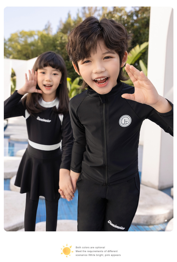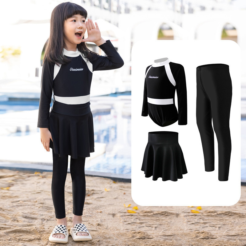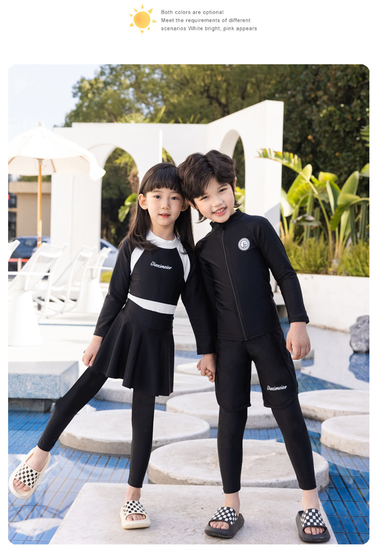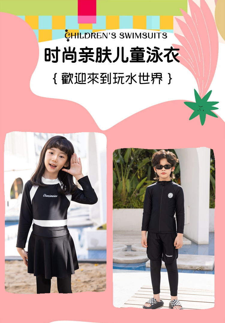 2024新款男女童游泳衣 分体长袖长裤套装时尚可爱俏皮潜水服沙滩