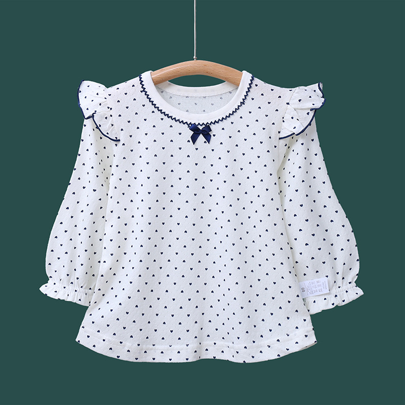 한국식 캐주얼 인 스타일 순수한면 클래스 만화 인쇄 둥근 목 바닥 셔츠 여성 아기 서양식 폴카 도트 탑 긴 소매스토어 가기