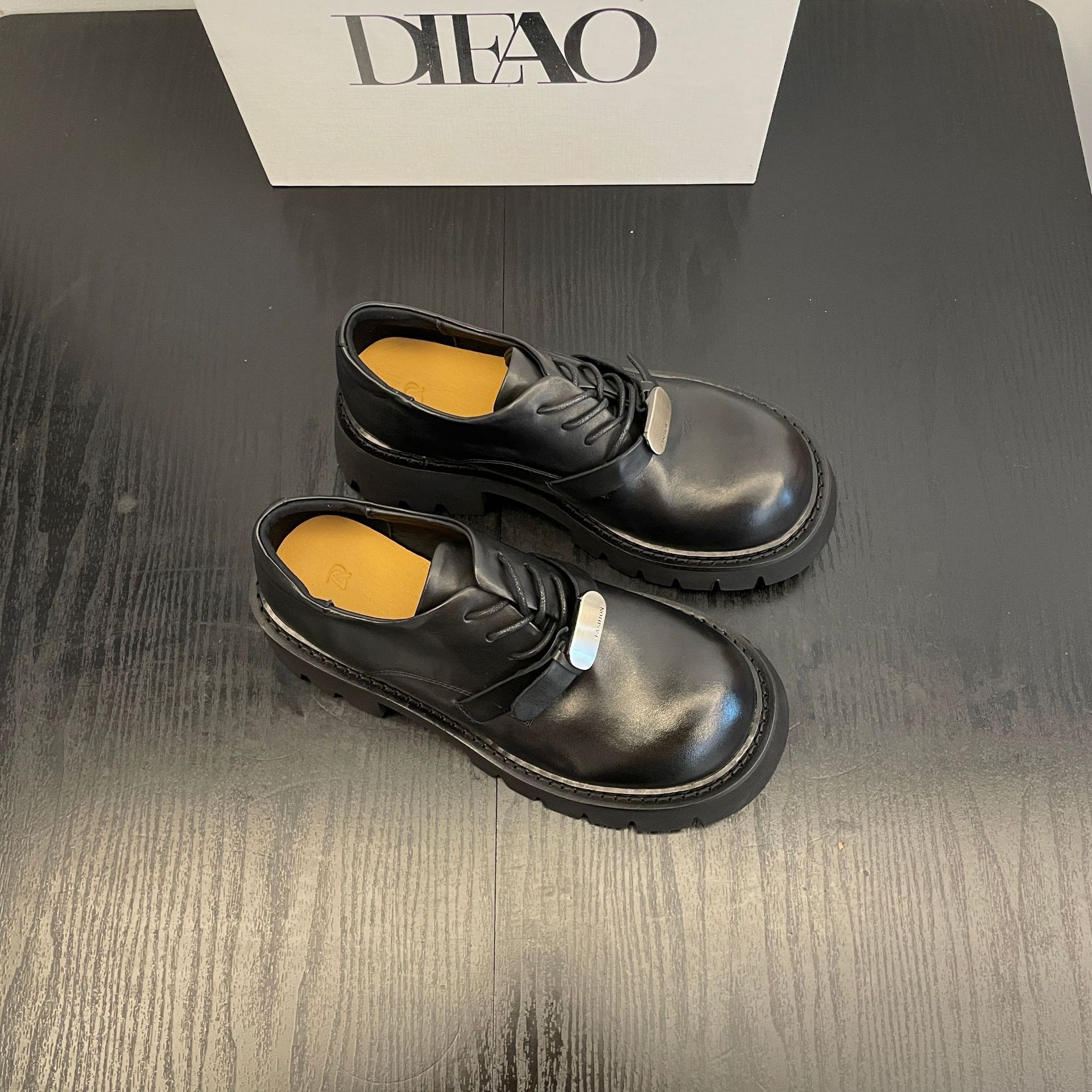 나비 호주 가죽 신발 여성 가죽 레이스 업 높이 증가 2024 봄 새로운 영국 스타일의 작은 패션 유니폼 신발스토어 가기