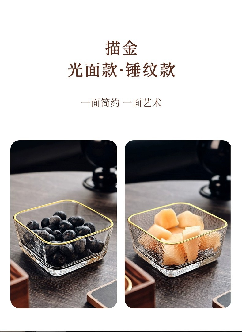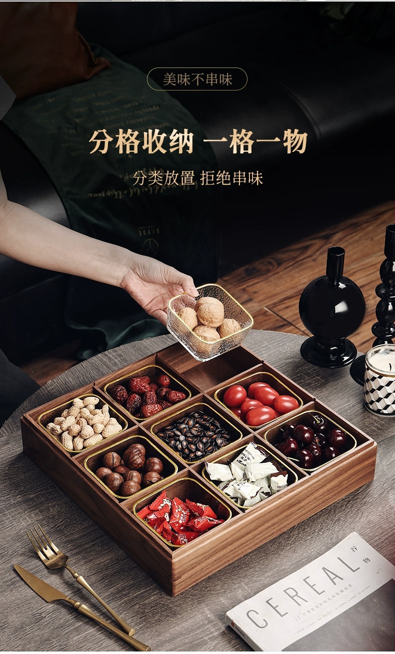 • 호두 4 그리드 과일 플레이트 + 황금 가장자리 유리 그릇 * 4