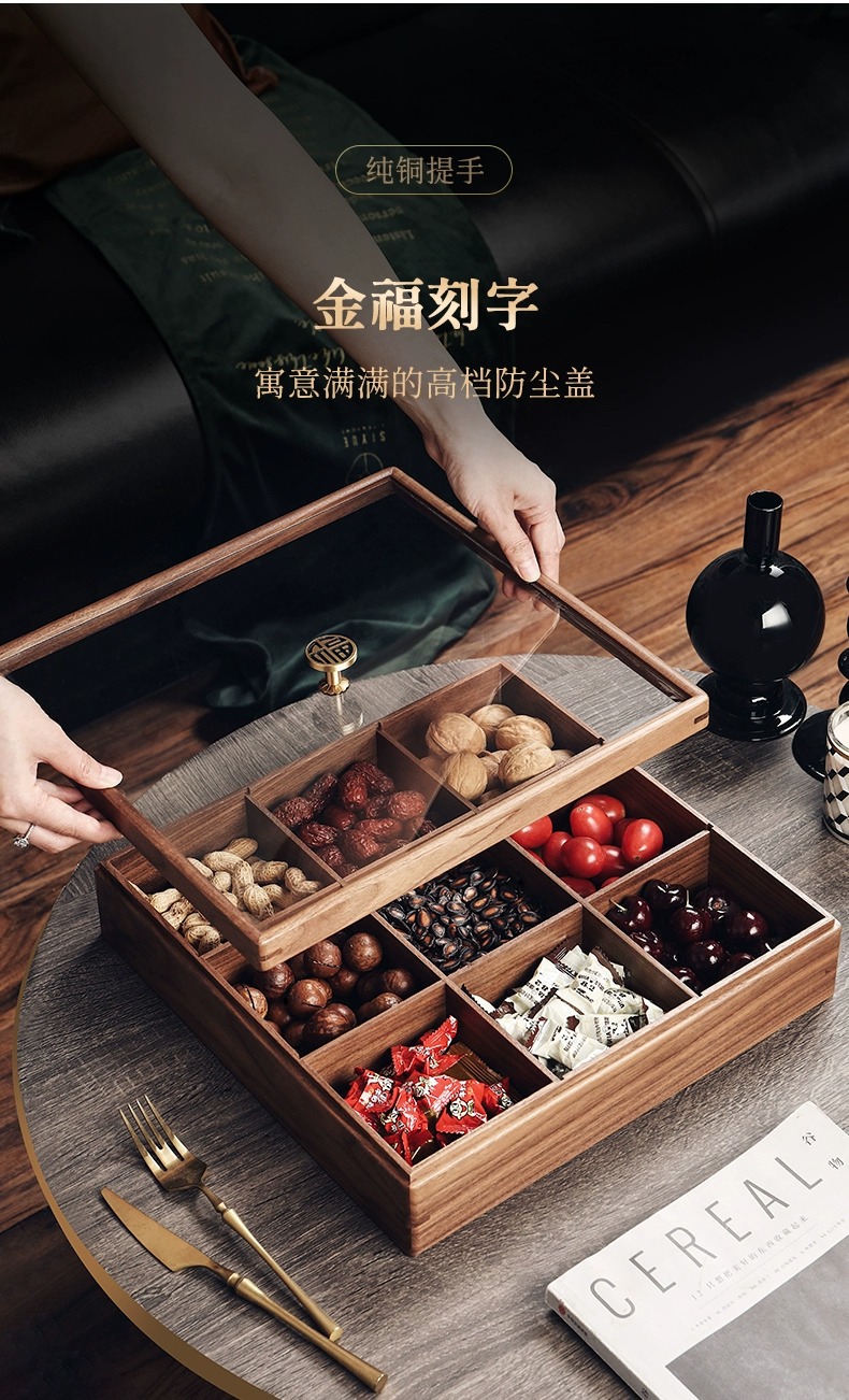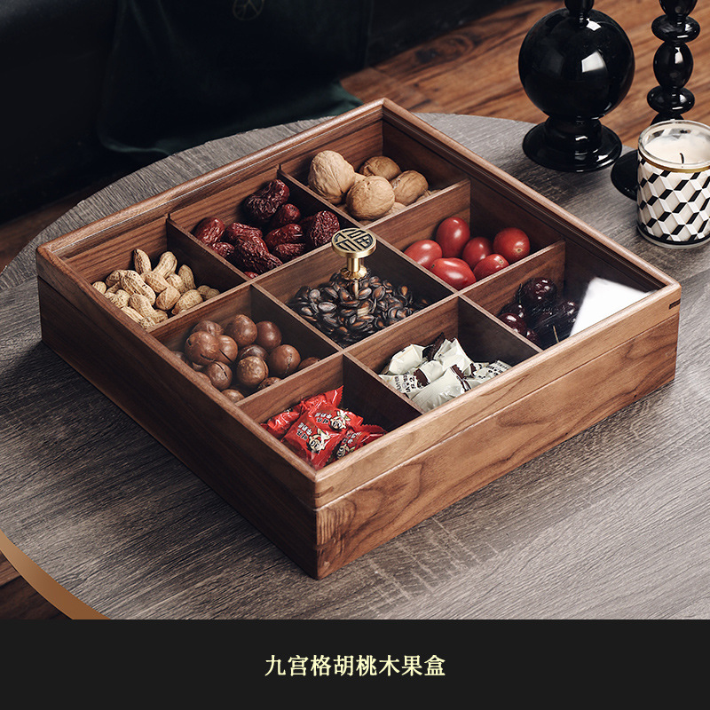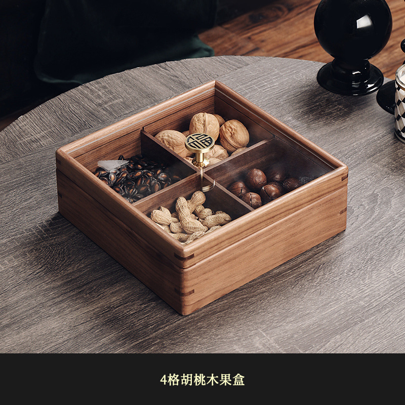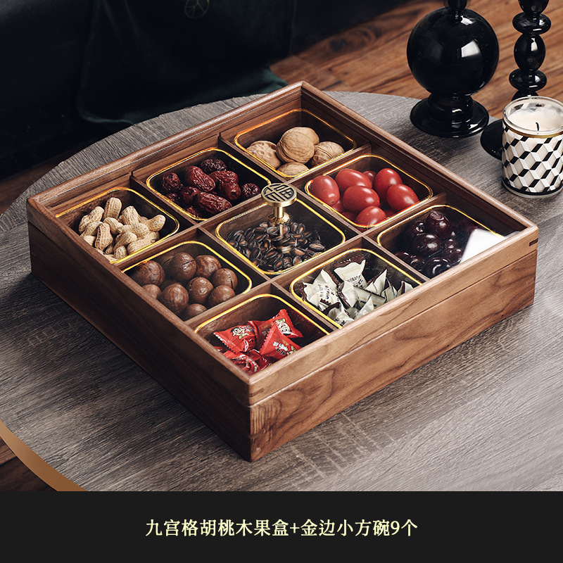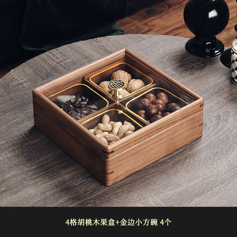 2025 중국 스타일의 가벼운 고급 단단한 나무 말린 과일 상자 홈 거실 커피 테이블 과일 접시 사탕 과일 하이 엔드 견과류 보관 상자스토어 가기
