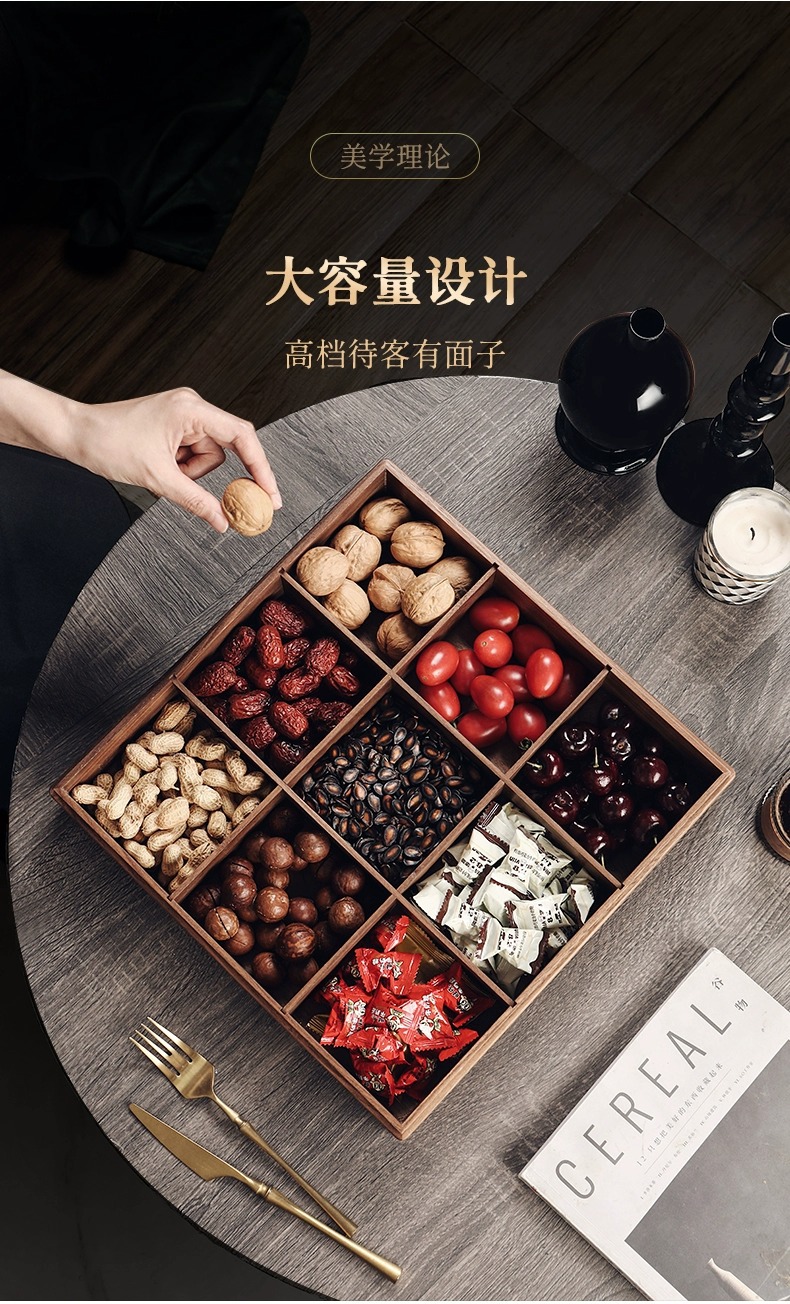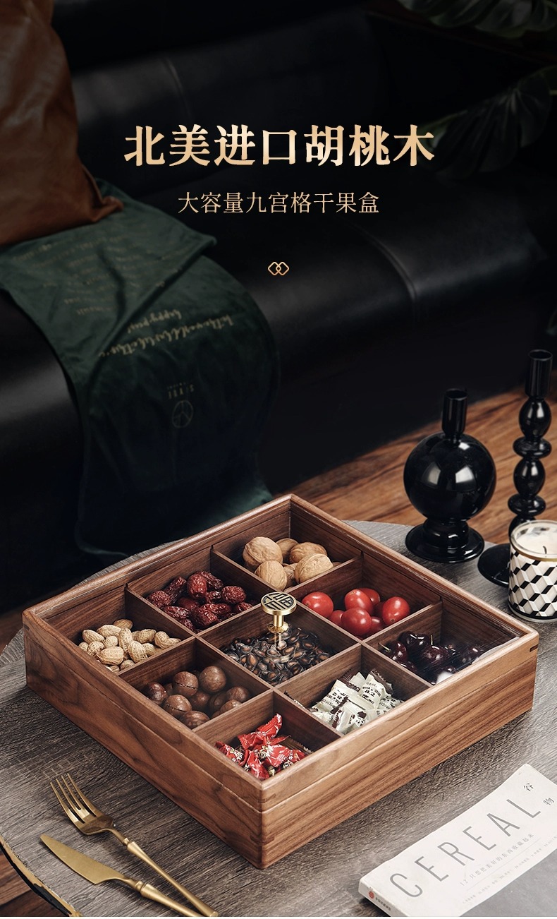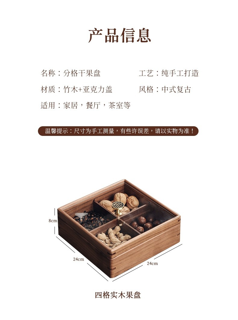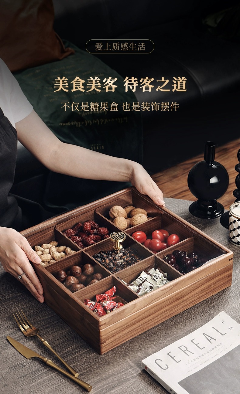 2025 중국 스타일의 가벼운 고급 단단한 나무 말린 과일 상자 홈 거실 커피 테이블 과일 접시 사탕 과일 하이 엔드 견과류 보관 상자스토어 가기