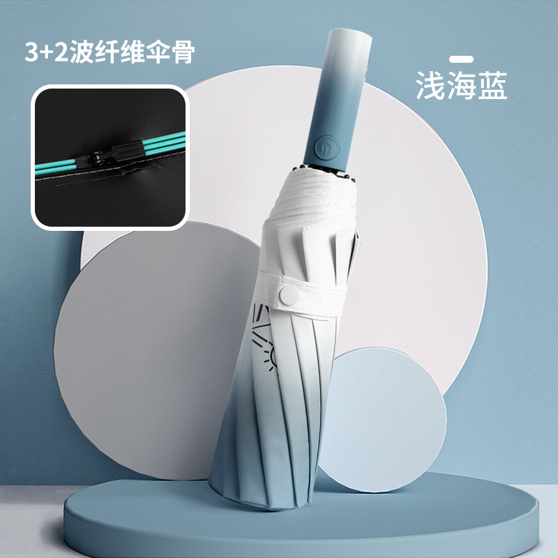 소금 그라디언트 자동 우산 강하고 튼튼한 태양 우산 학생 태양 보호 UV 보호 두꺼운 태양 우산
