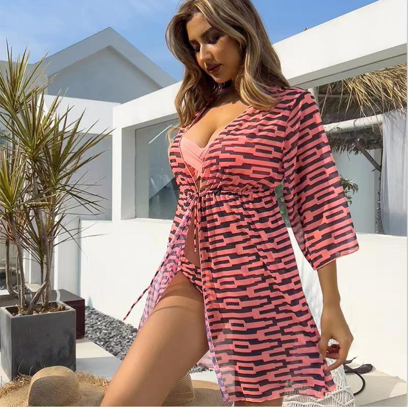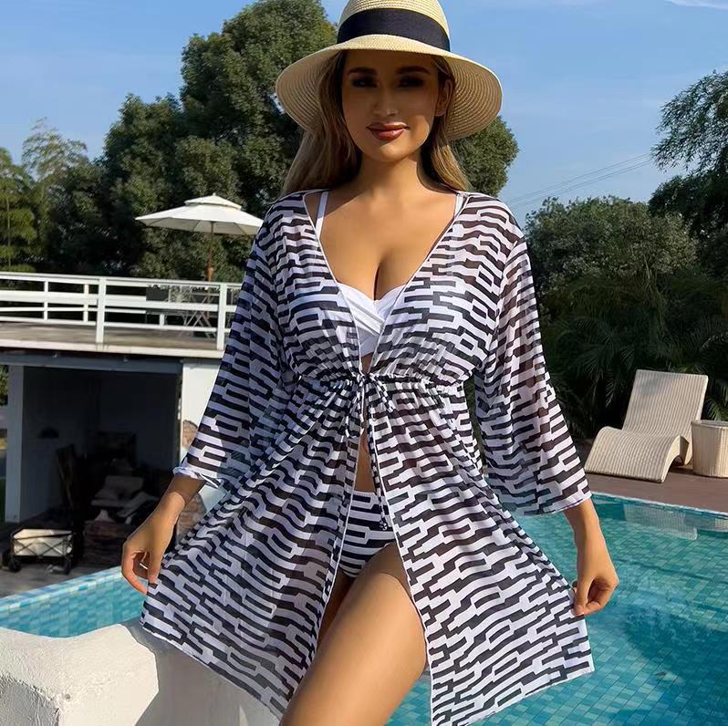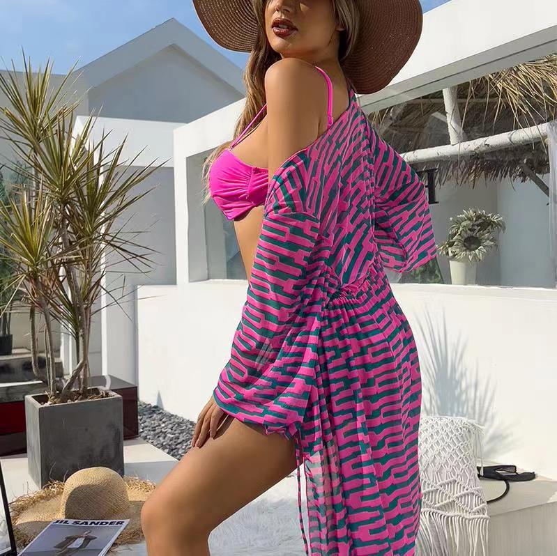 2024 새로운 수영복 유럽과 미국의 섹시한 비키니 메쉬 블라우스 3 피스 여성 수영복 비키니