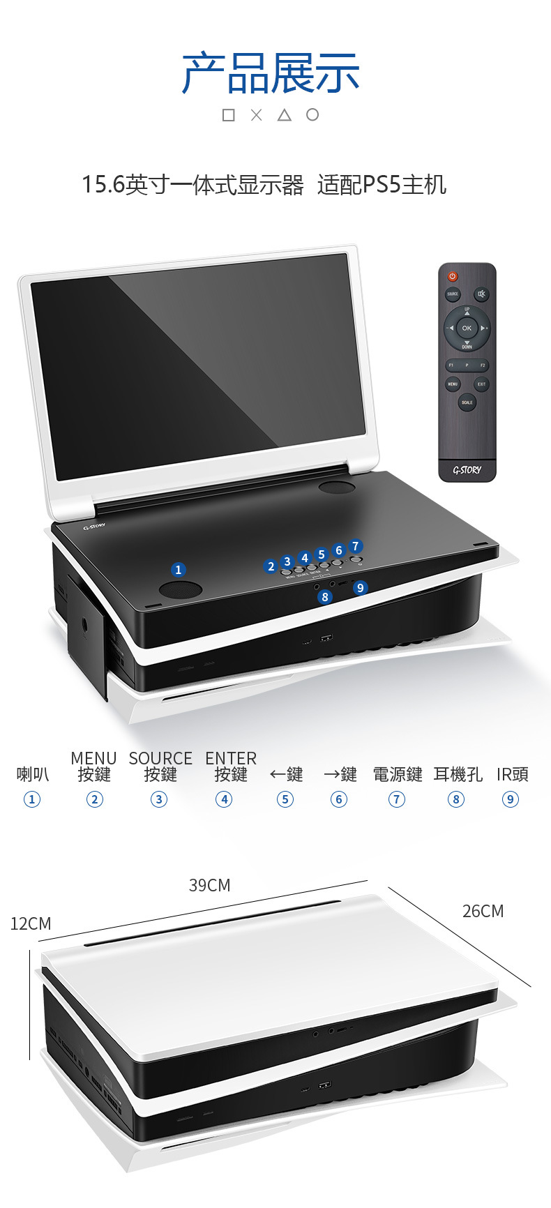 GSTORY 크로스보더 PS5/PS5 Slim/PS5 Pro 모니터 올인원 15.6inch 휴대용 디스플레이