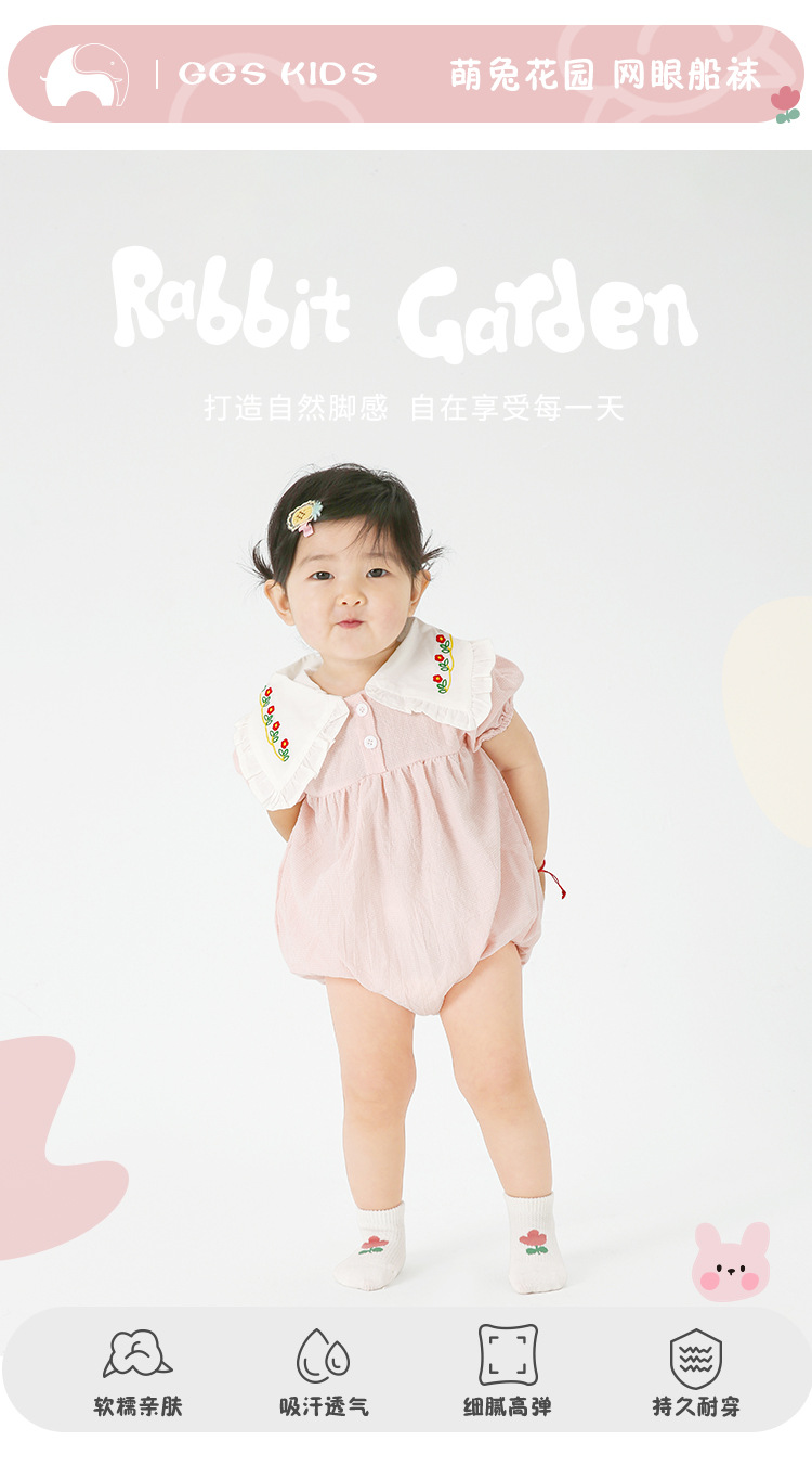 • G396 귀여운 토끼 정원 메쉬 보트 양말
