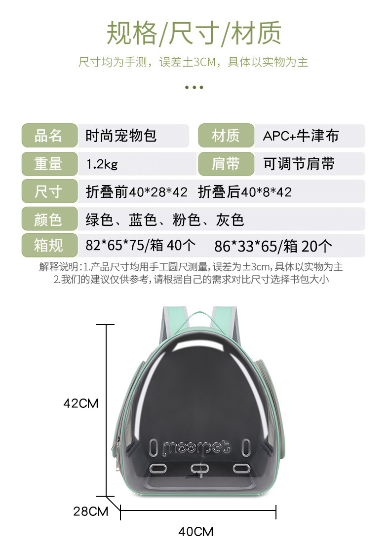 공장 직접 공급 고양이 가방 아웃 바운드 가방 대용량 애완 동물 휴대용 가방 사계절 유니버설 어깨 휴대용 통기성 고양이 배낭
