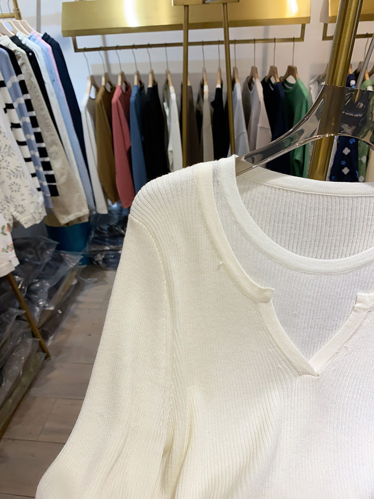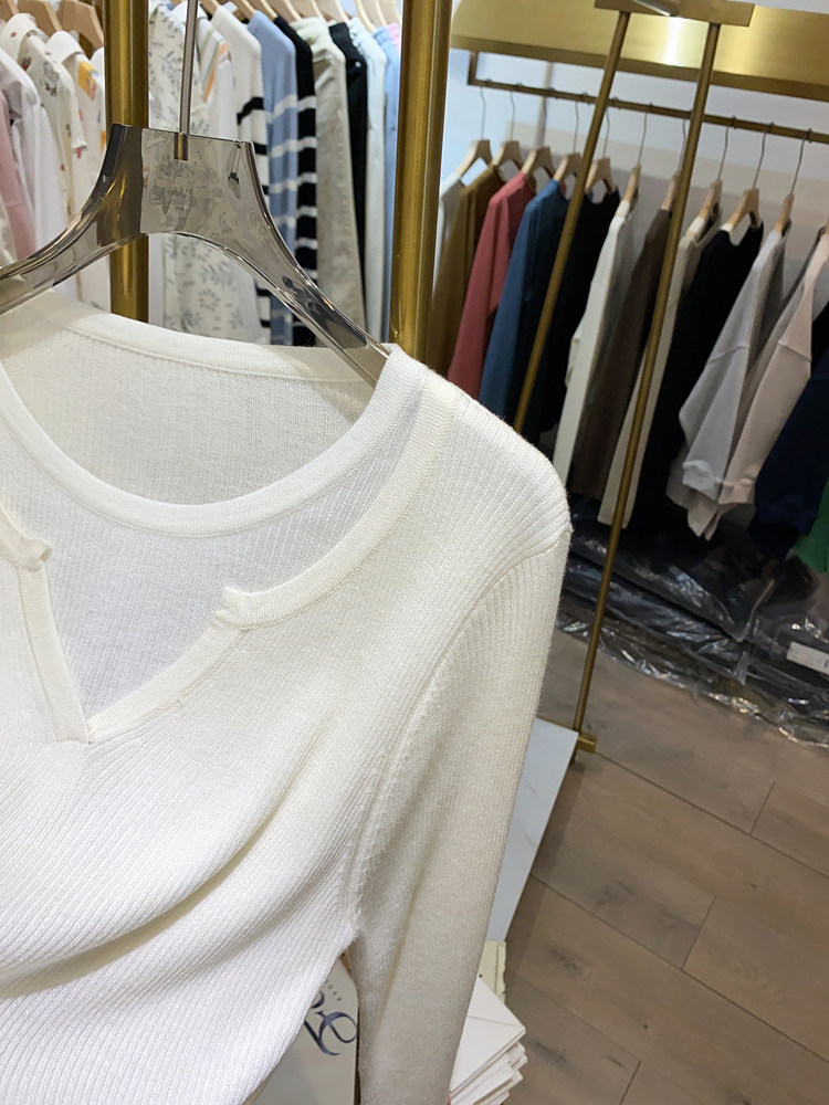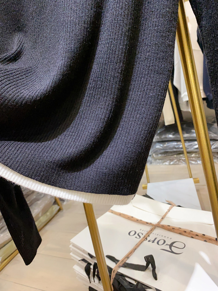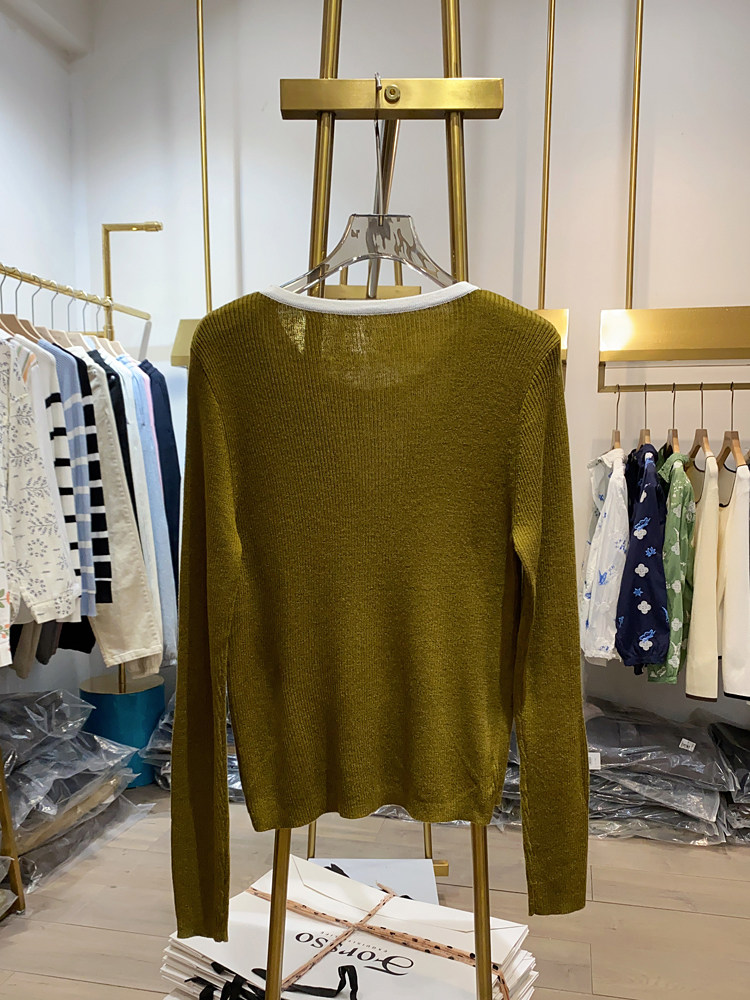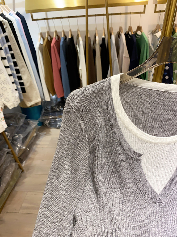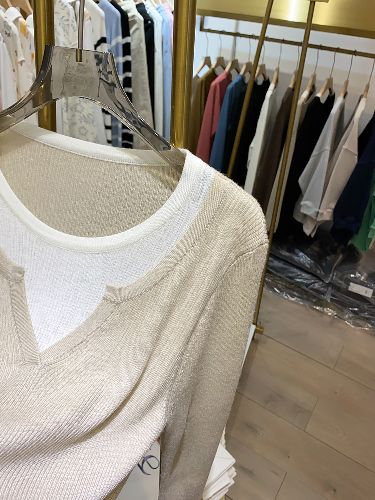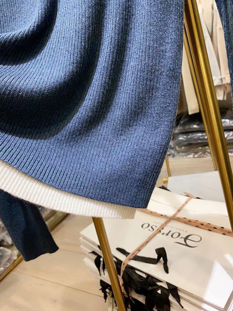 여성을위한 봄 바닥 스웨터 봄 2024 새로운 짧은 스티칭 대비 컬러 가짜 투피스 풀오버 탑 슬림 핏 패션스토어 가기