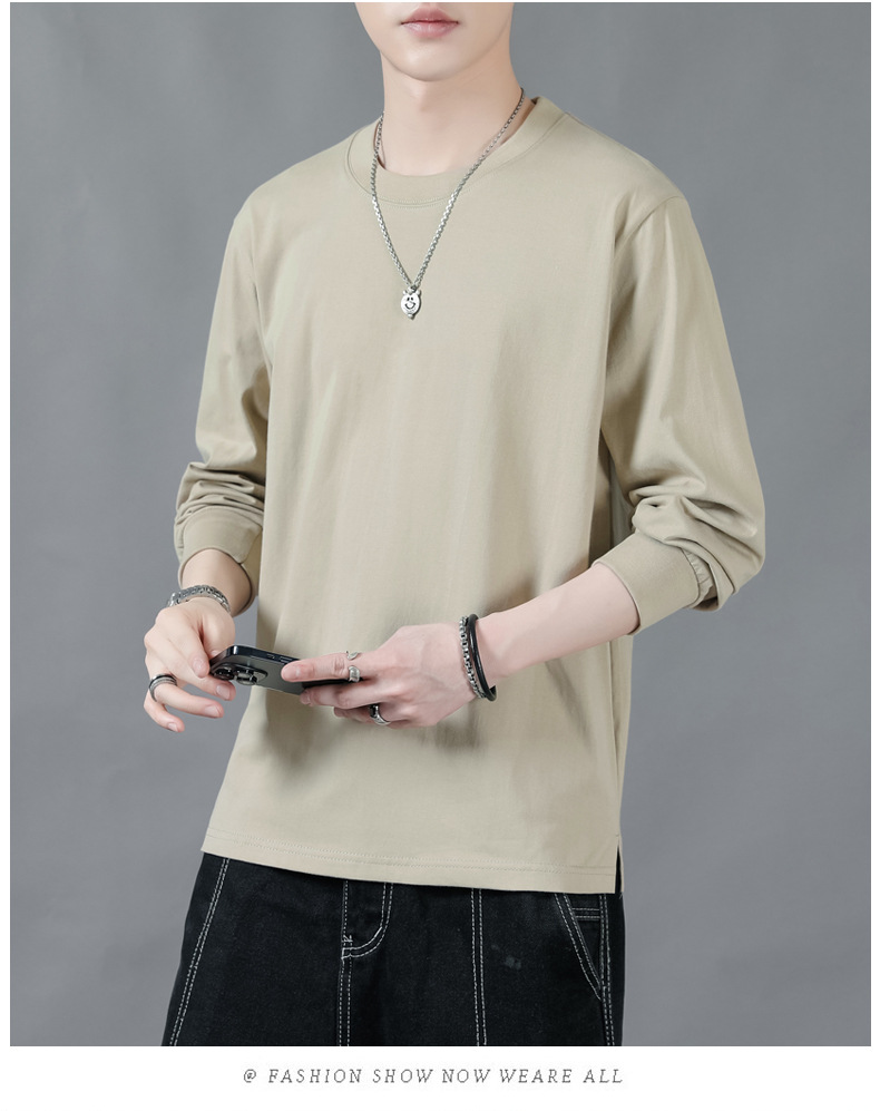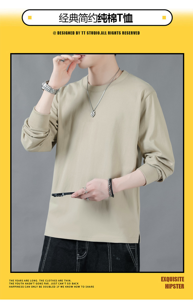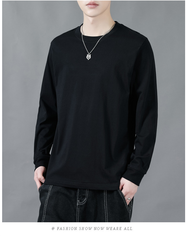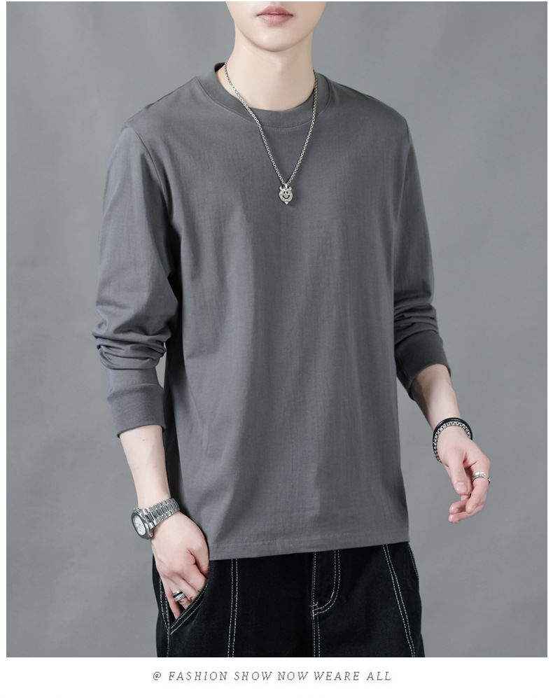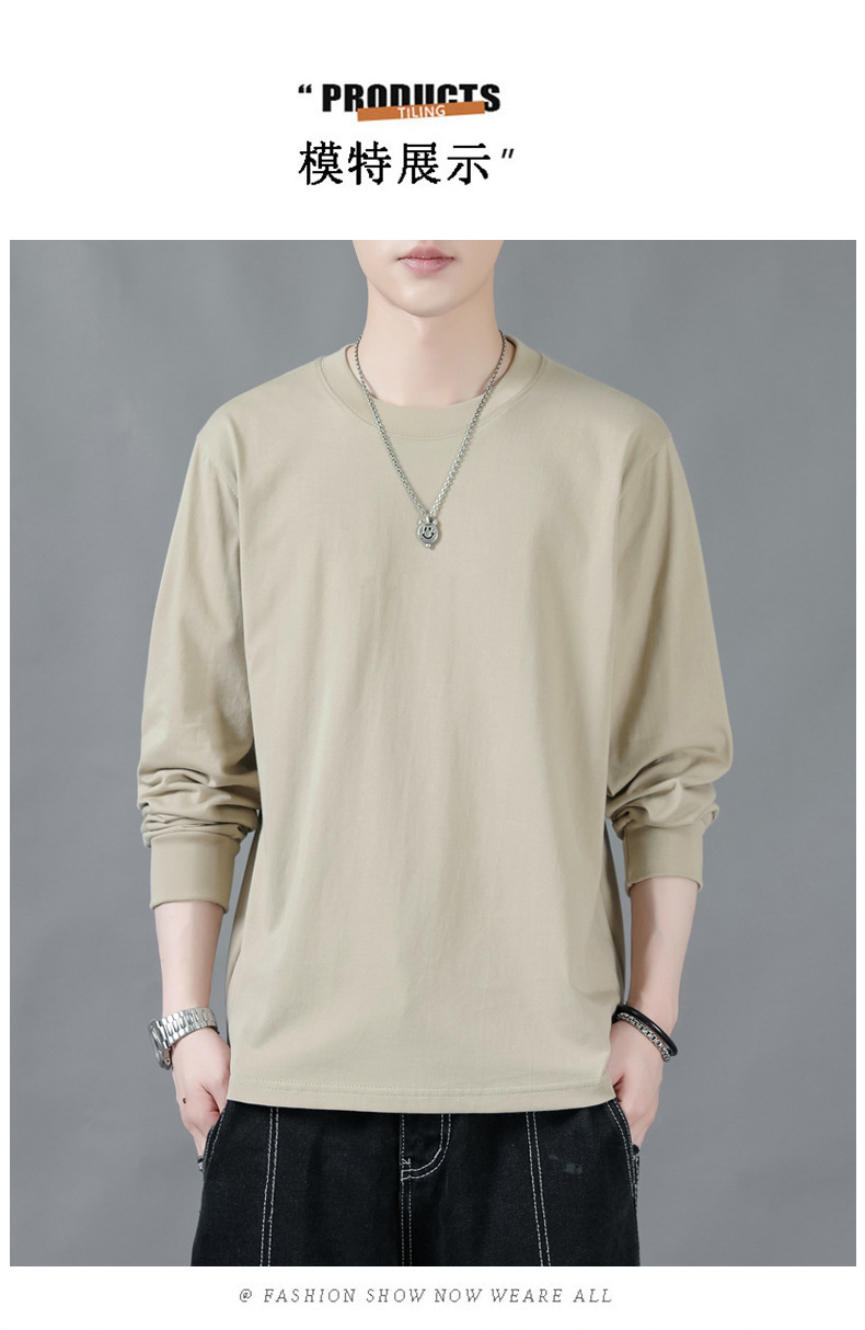 2024 봄과 가을 코튼 긴팔 티셔츠 남성용 풀오버 크루 넥 슬리브 느슨한 올 매치 솔리드 컬러베이스 셔츠
