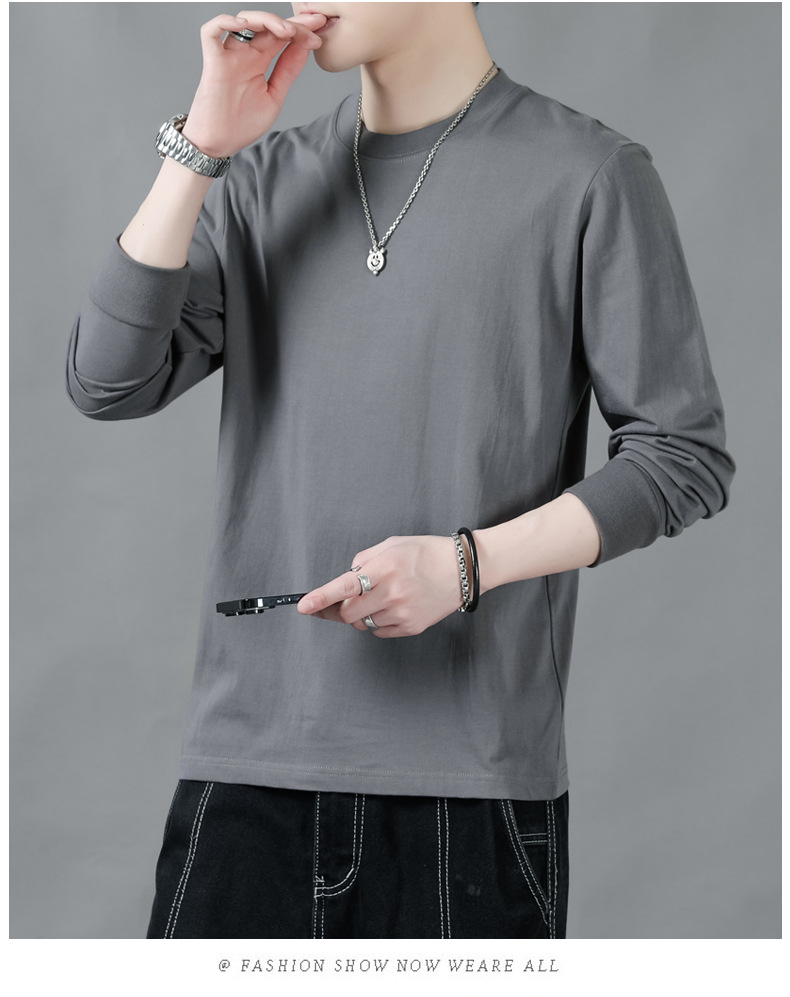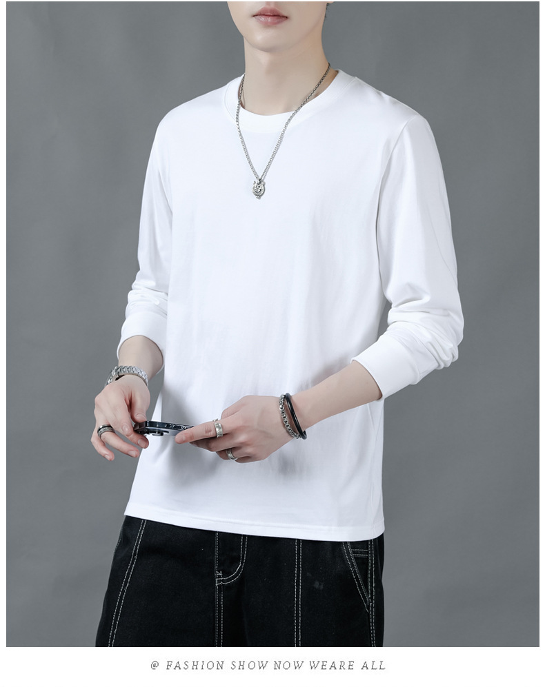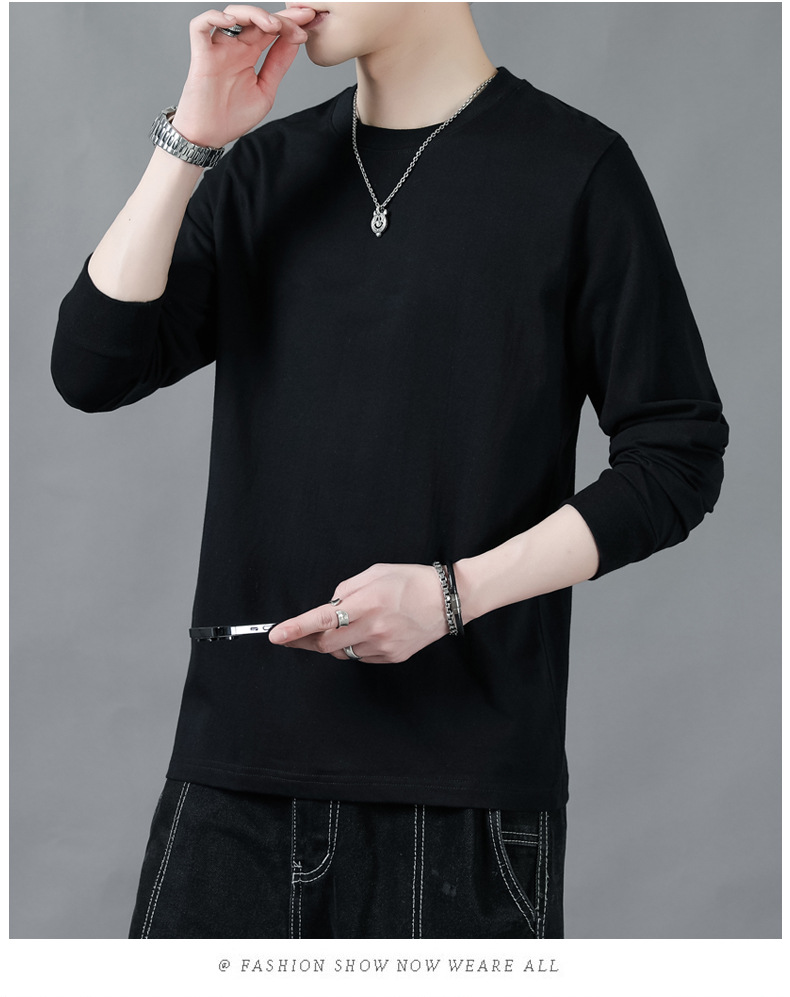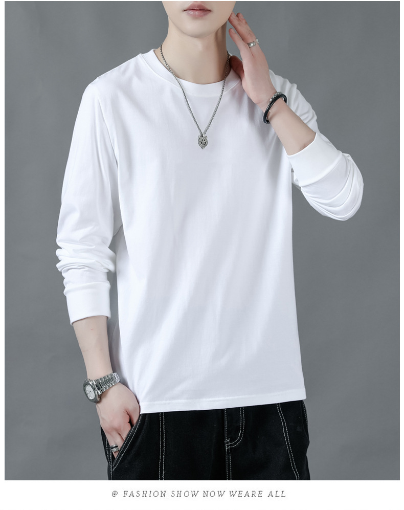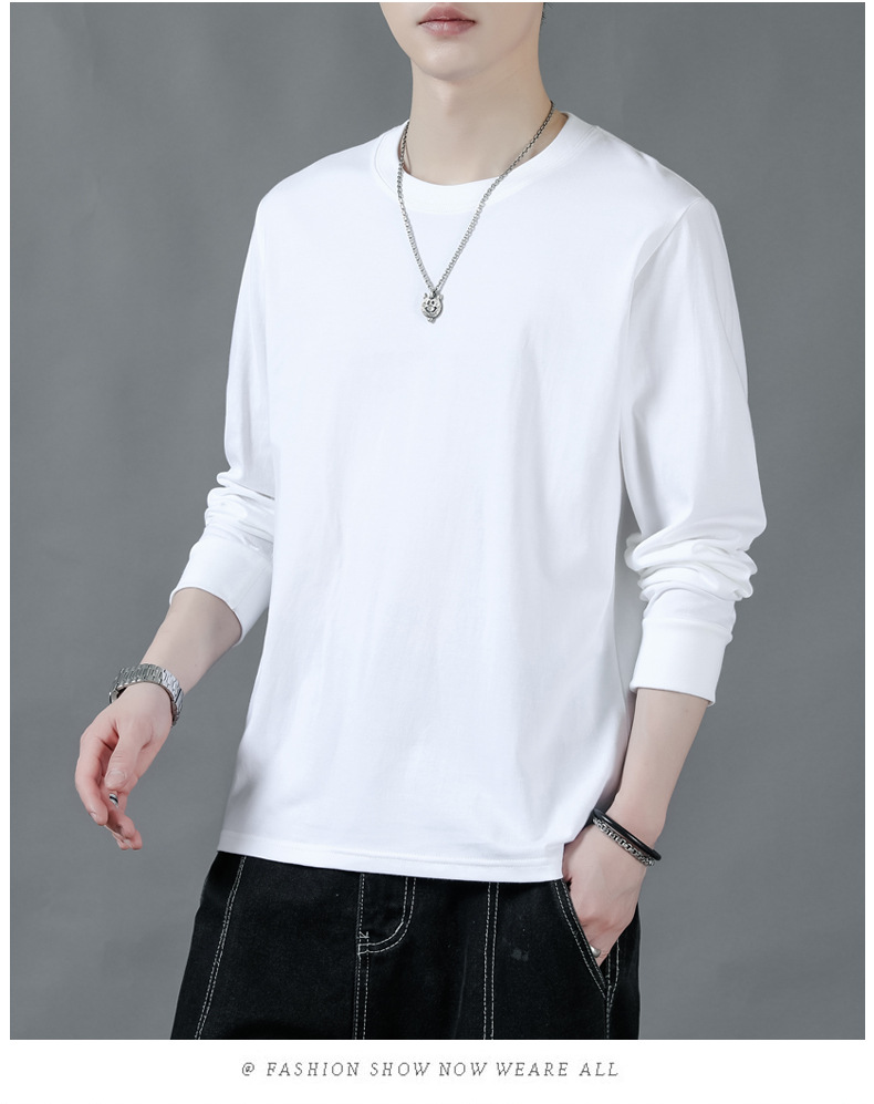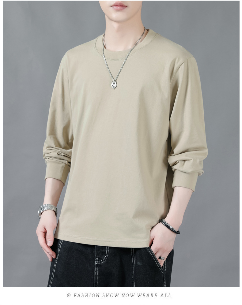 2024 봄과 가을 코튼 긴팔 티셔츠 남성용 풀오버 크루 넥 슬리브 느슨한 올 매치 솔리드 컬러베이스 셔츠