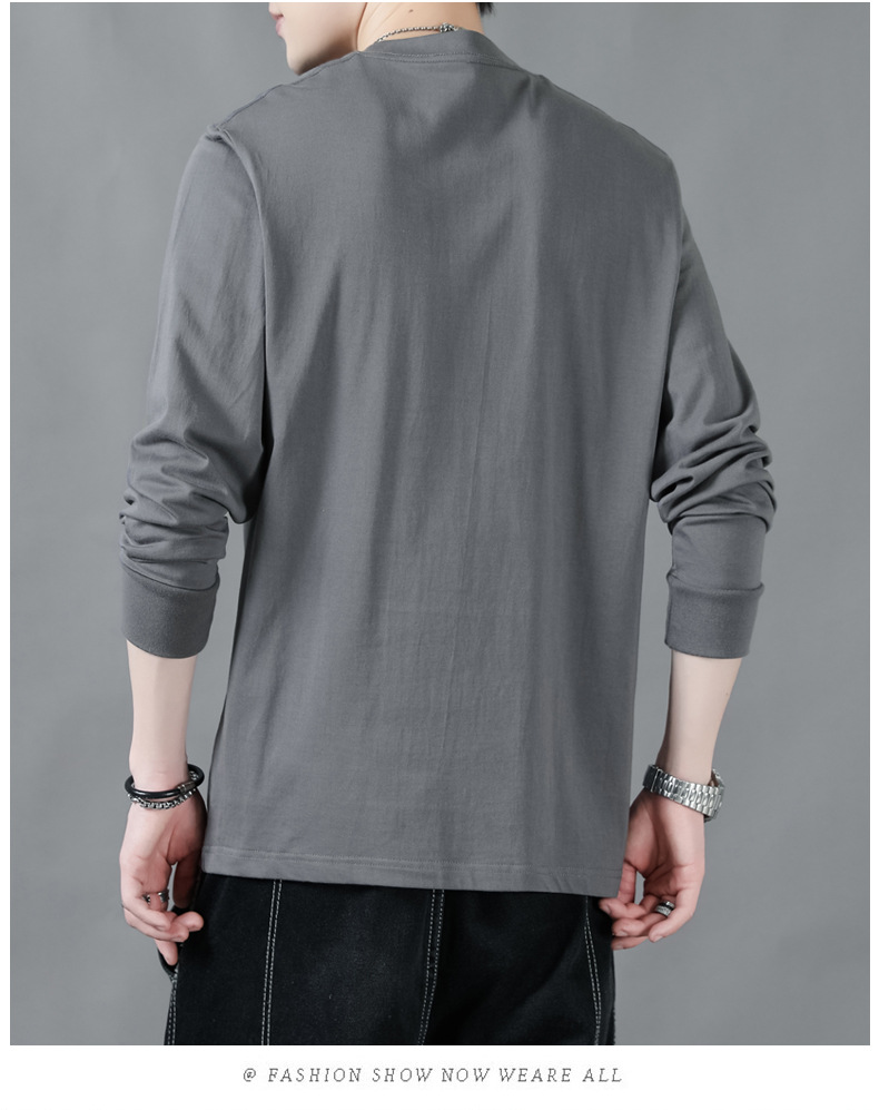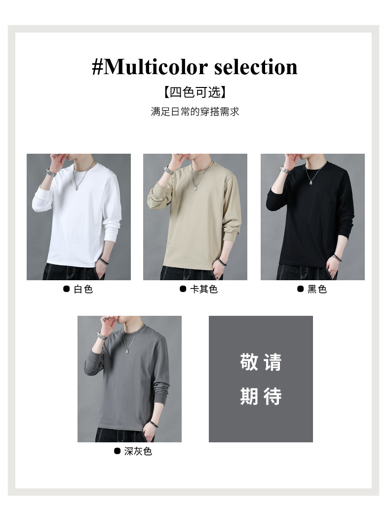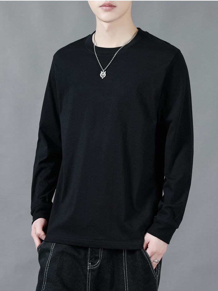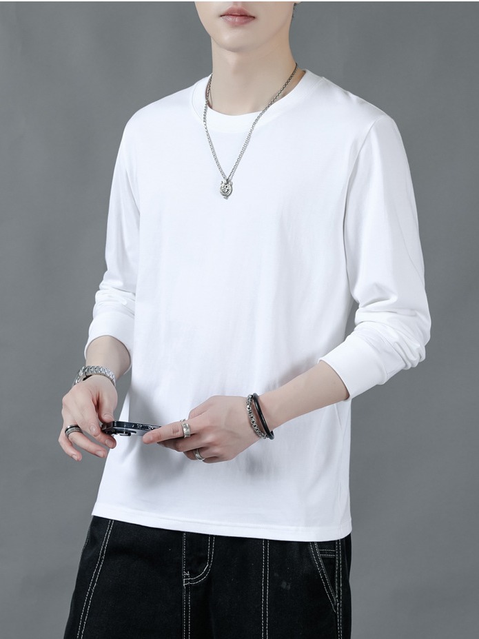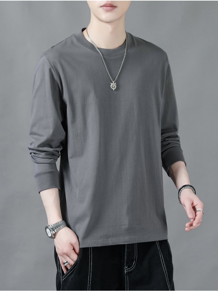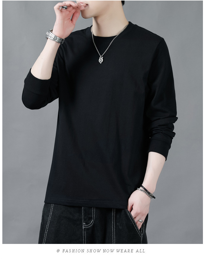 2024 봄과 가을 코튼 긴팔 티셔츠 남성용 풀오버 크루 넥 슬리브 느슨한 올 매치 솔리드 컬러베이스 셔츠