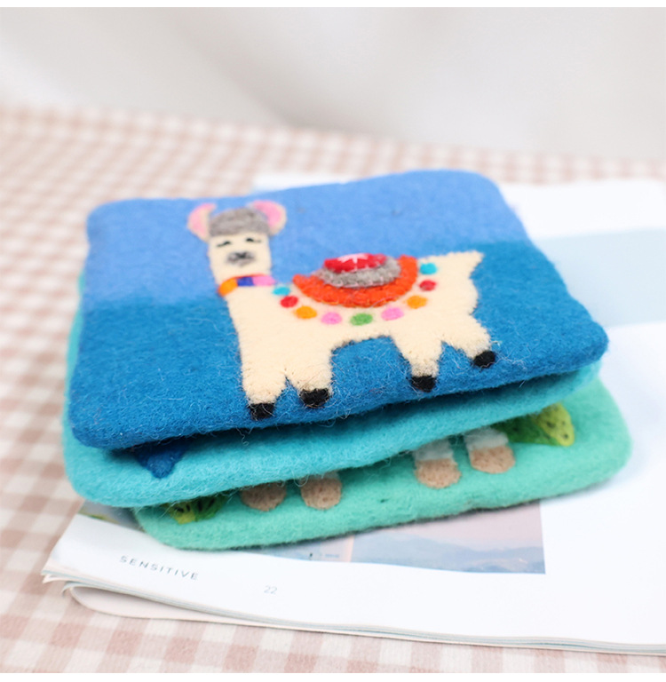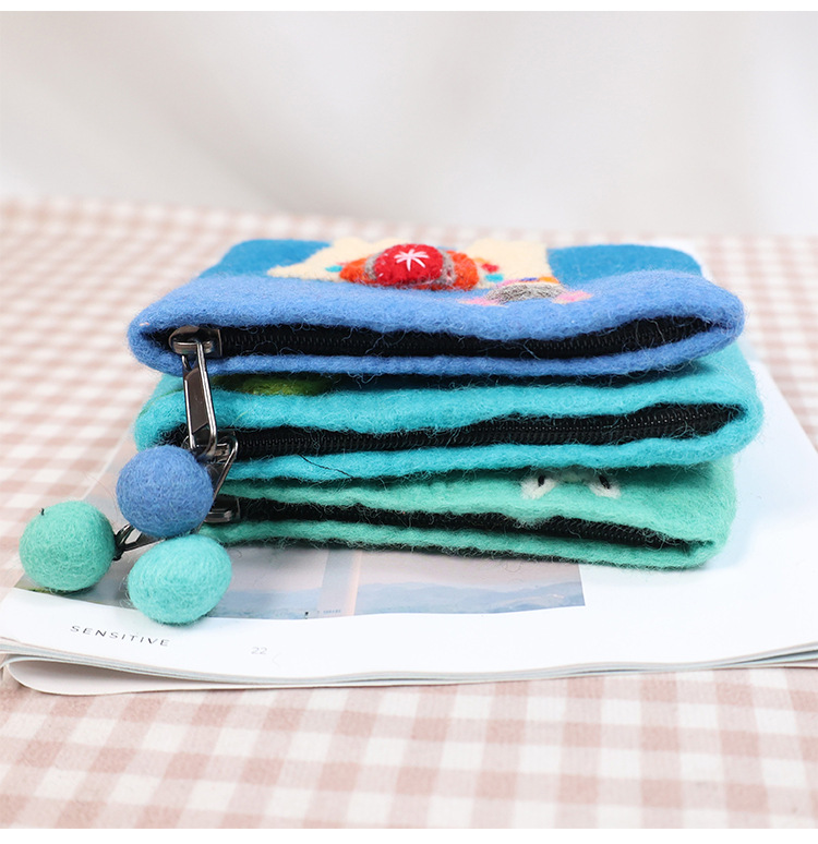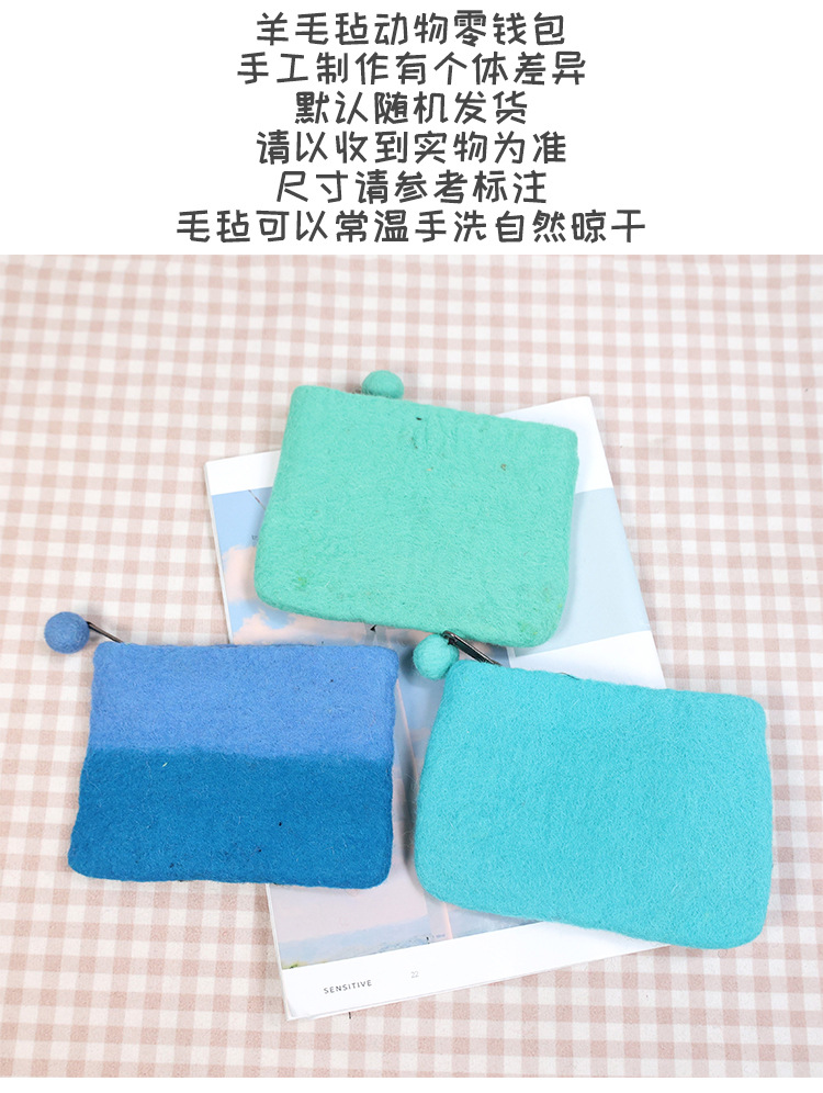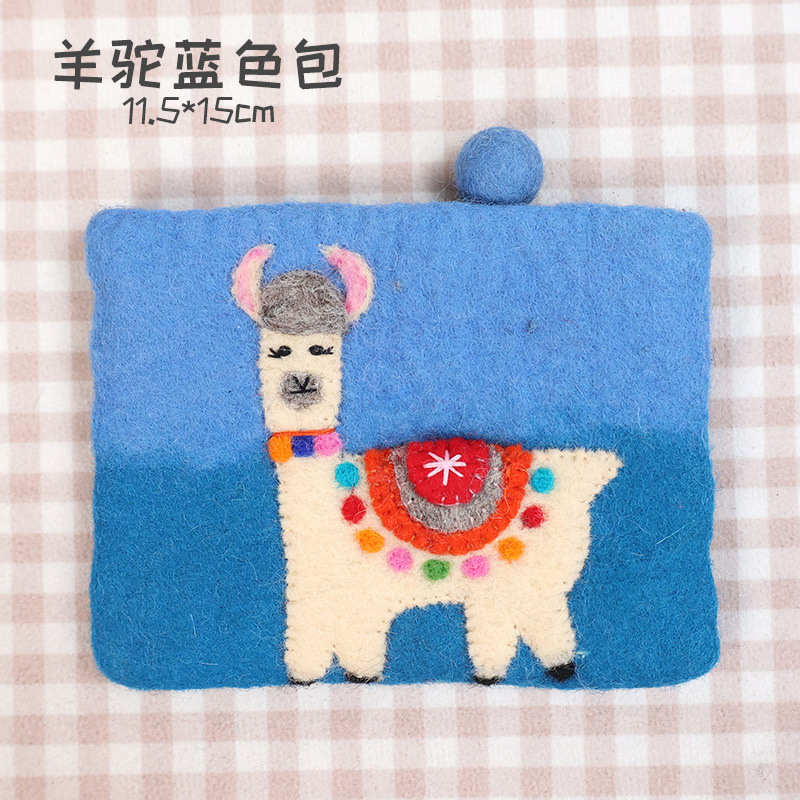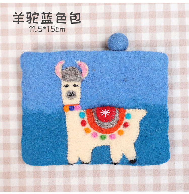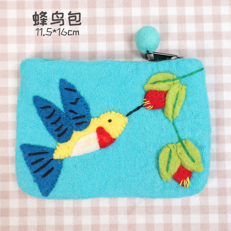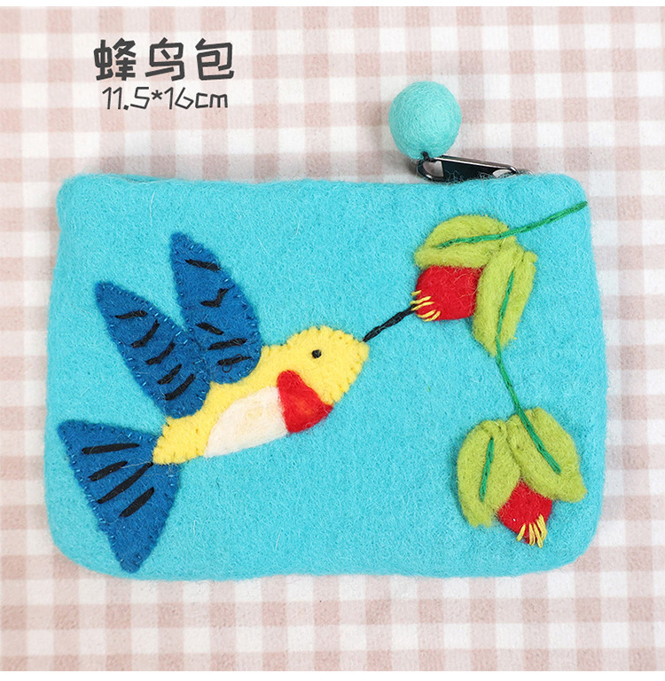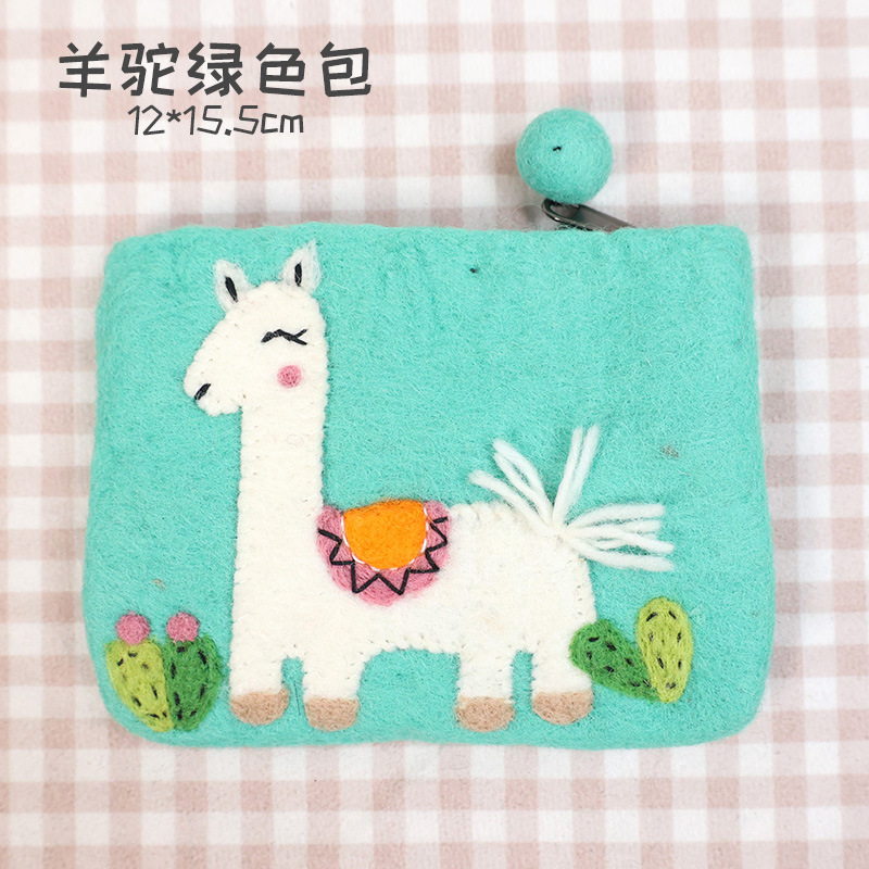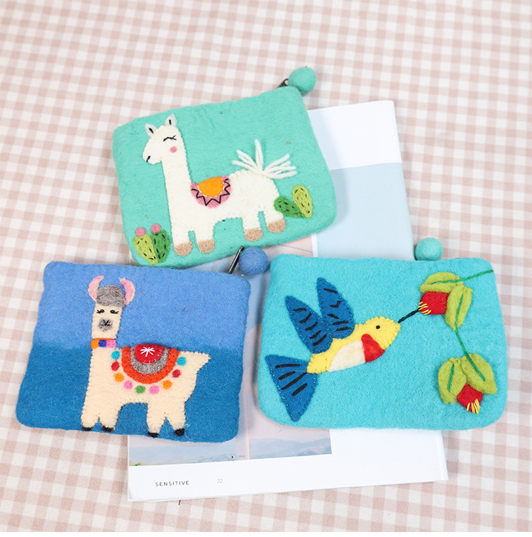 In 스타일 양모 펠트 동전 지갑 귀여운 동물 귀여운 알파카 벌새 모양 동전 가방 클러치 모리 소녀 스타일
