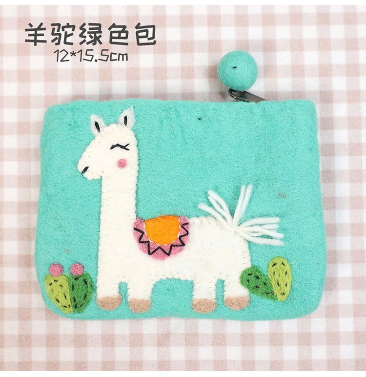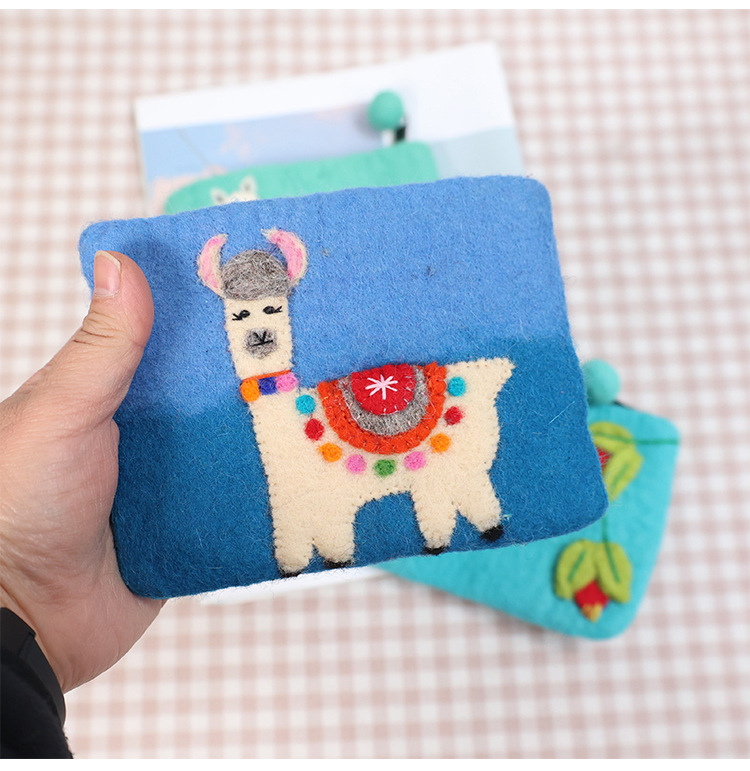 In 스타일 양모 펠트 동전 지갑 귀여운 동물 귀여운 알파카 벌새 모양 동전 가방 클러치 모리 소녀 스타일스토어 가기