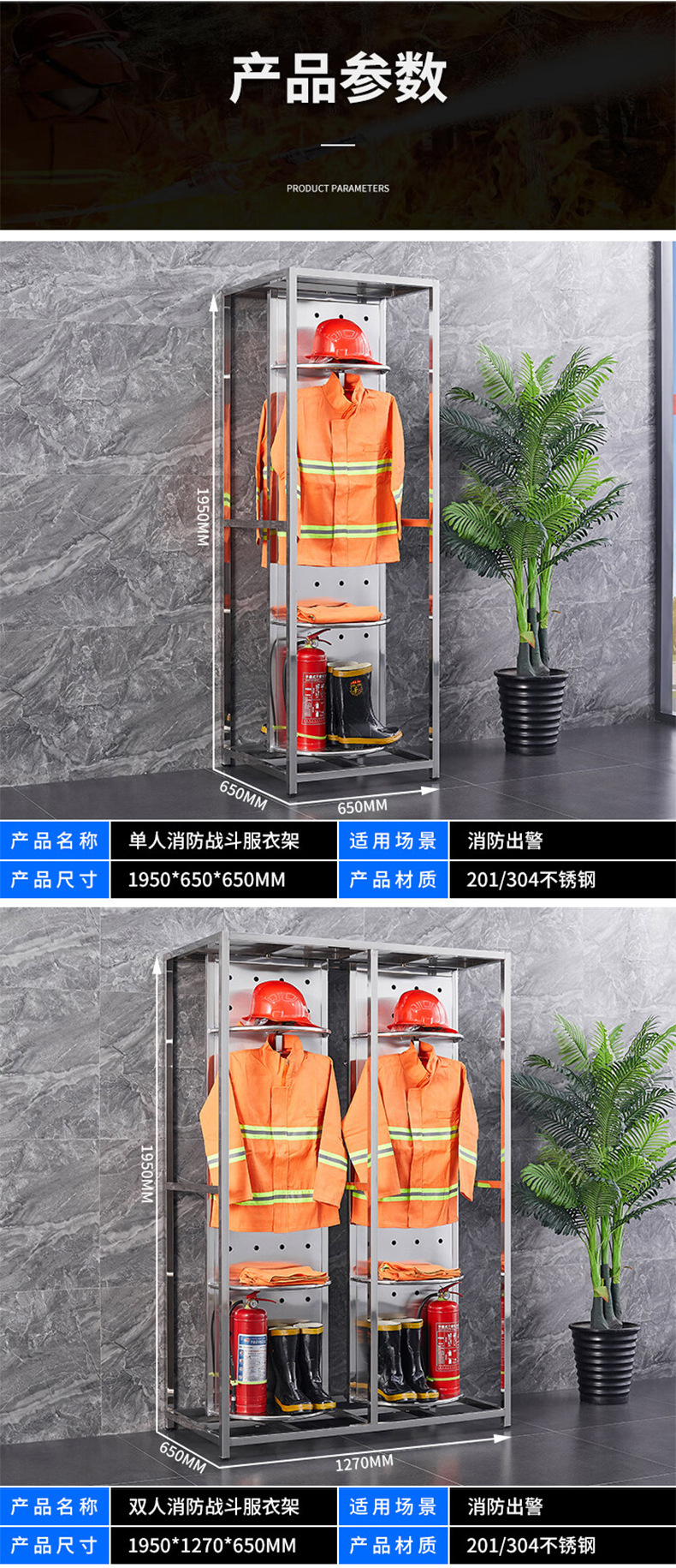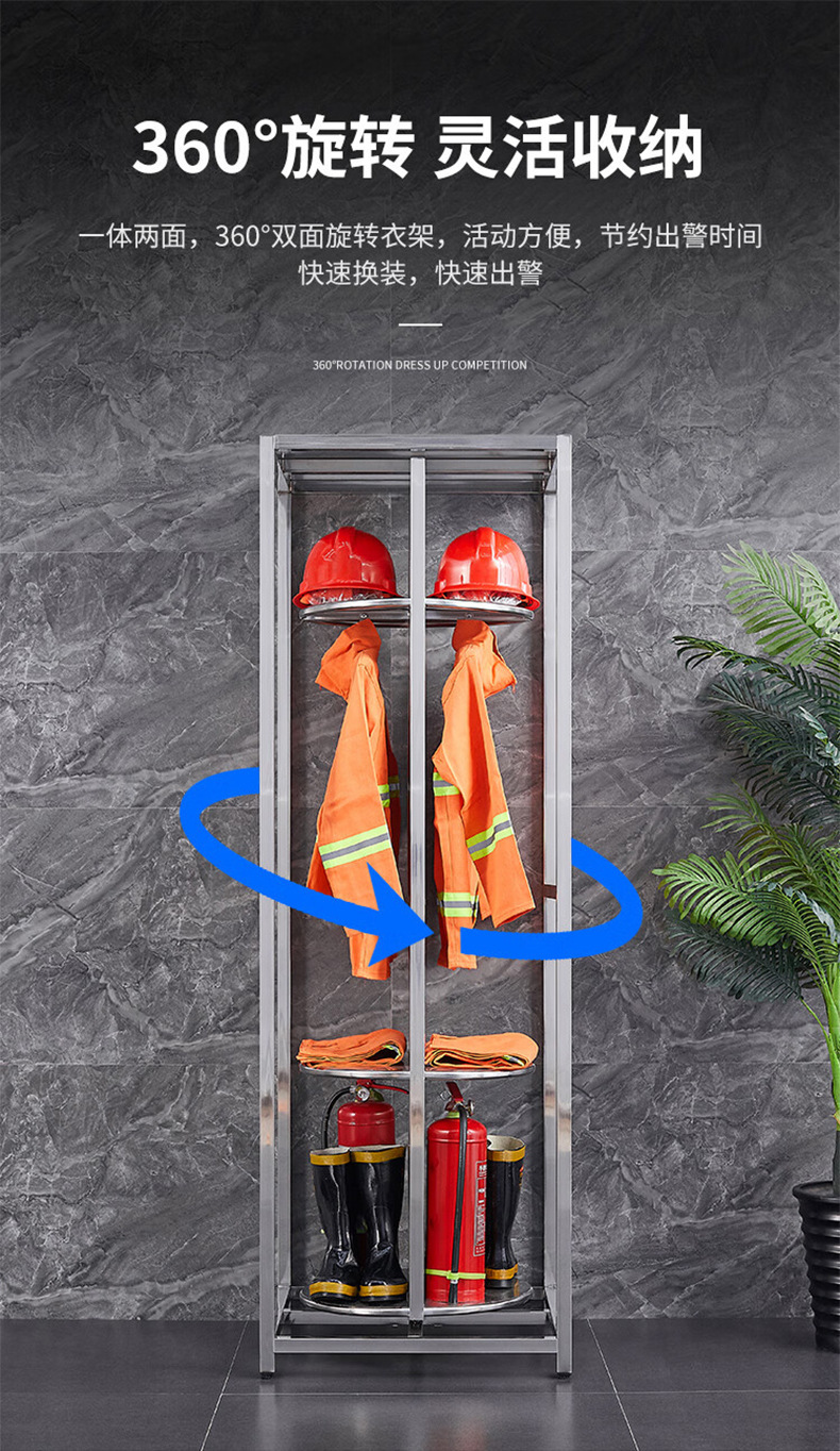 소방 세트 랙 스테인레스 스틸 전투 세트 랙 구조 화재 행거 회전 양면 소방 세트 랙