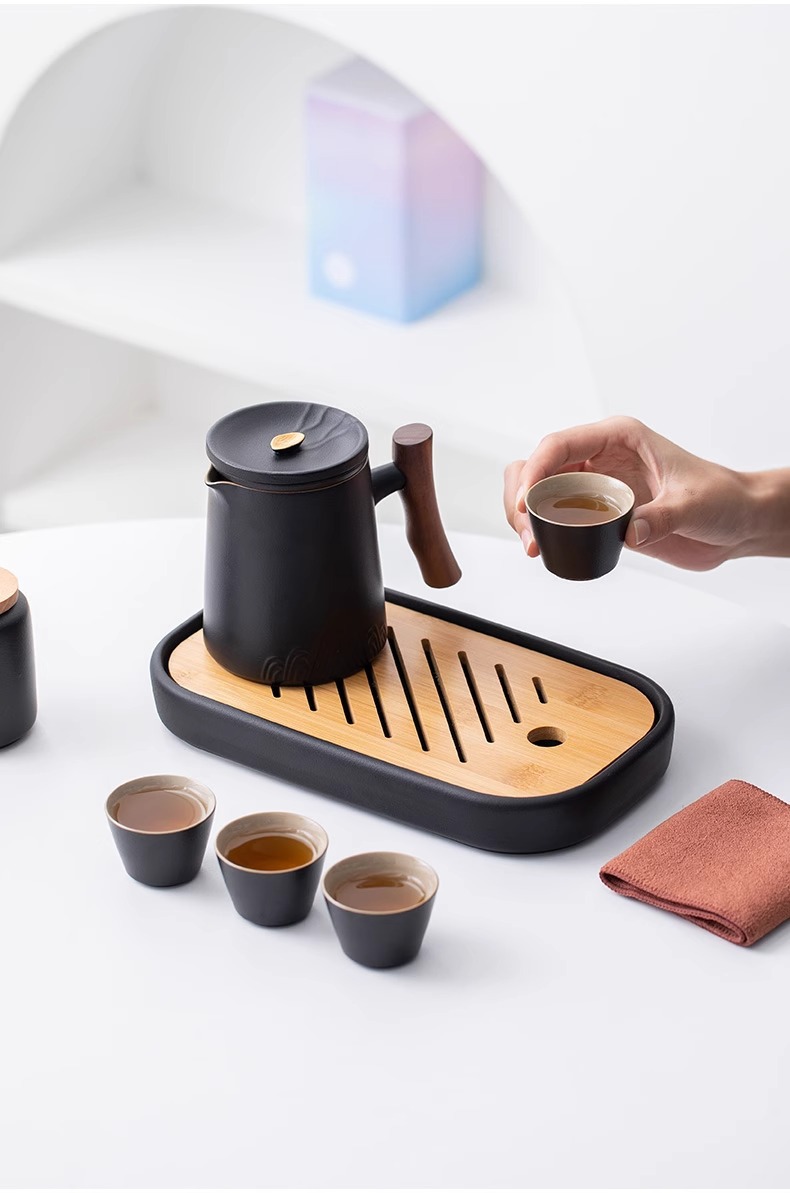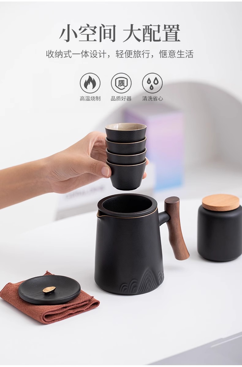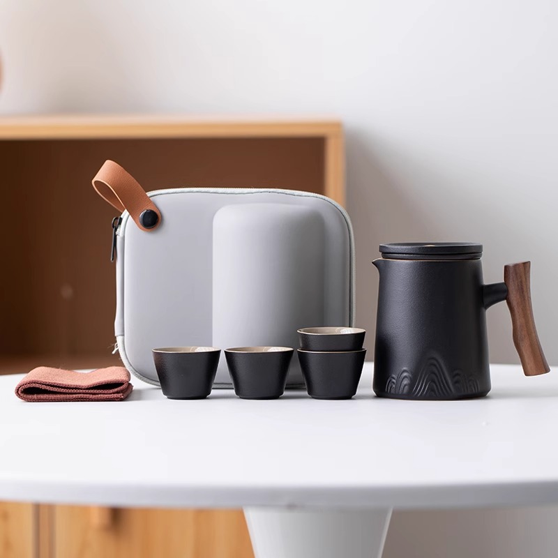 • 저우산 냄비 1개와 컵 4개(무광택 검정색)