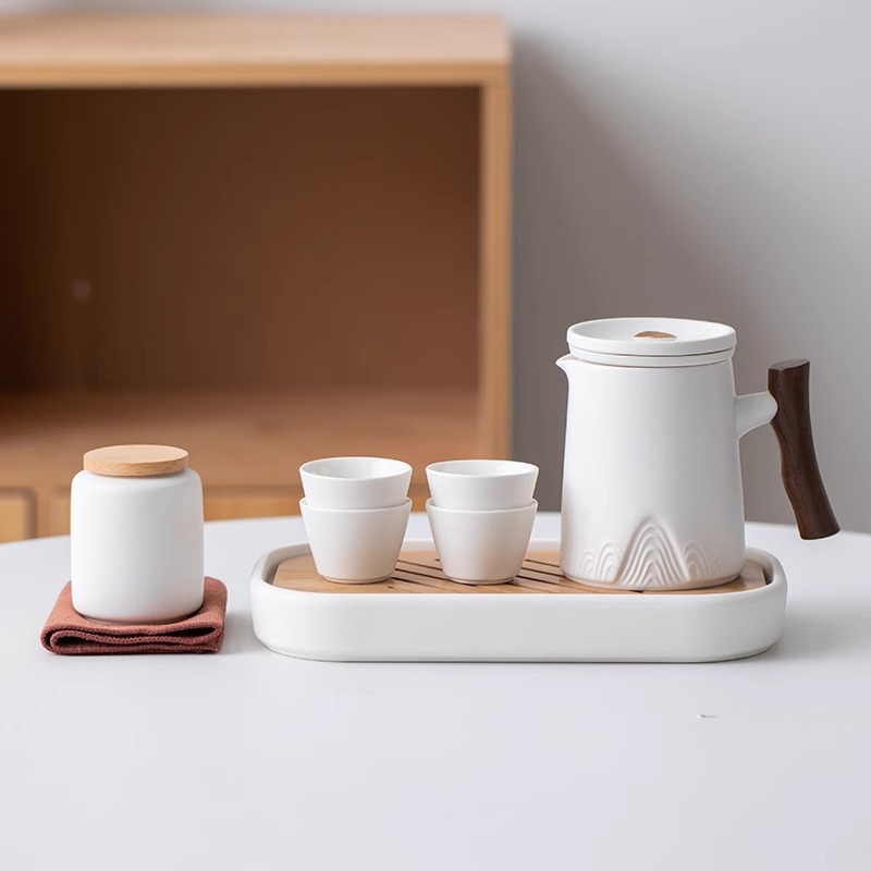 • 주산 냄비 1개와 컵 4개(반투명 흰색) + 차 캔 + 접시