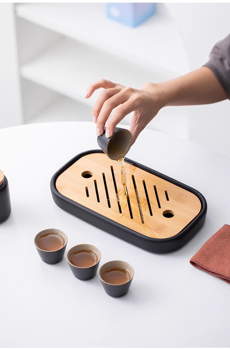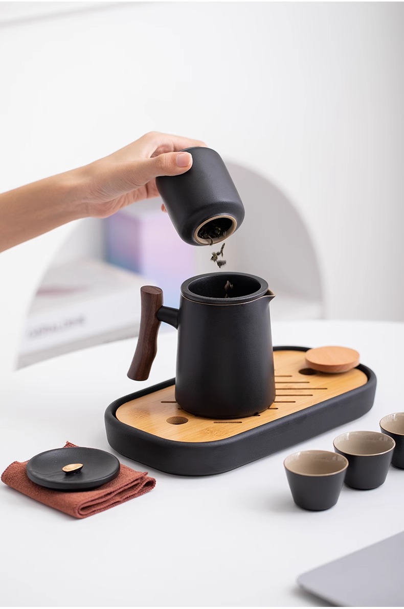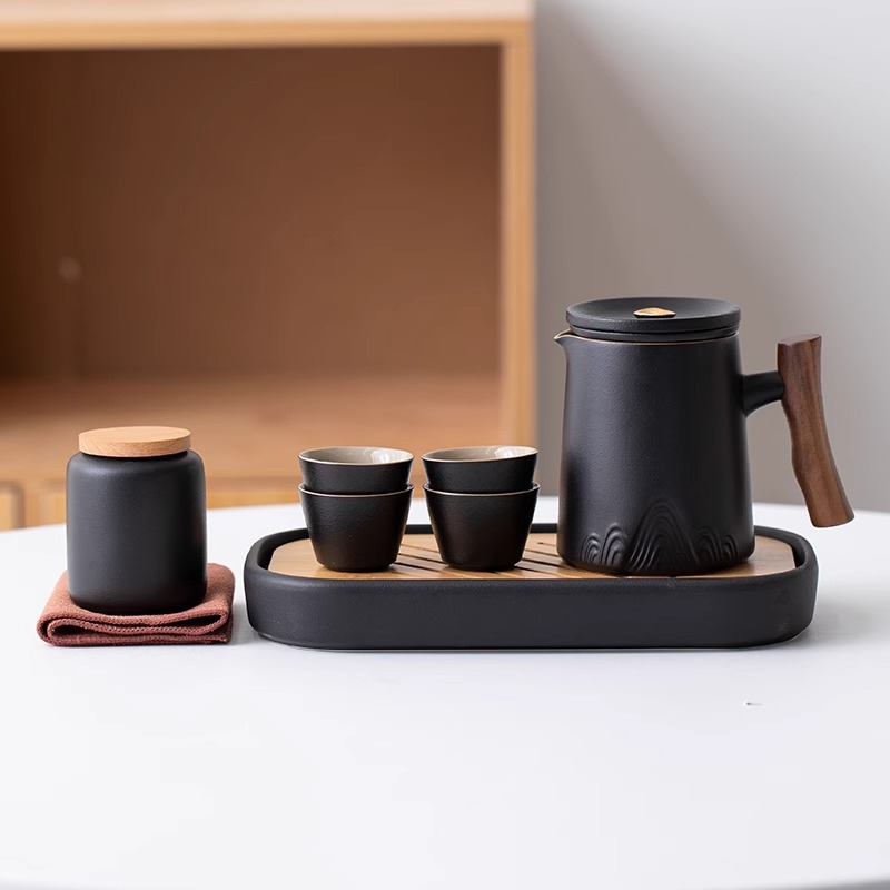 • 주산 냄비 1개와 컵 4개(무광택 검정색) + 차 캔 + 접시