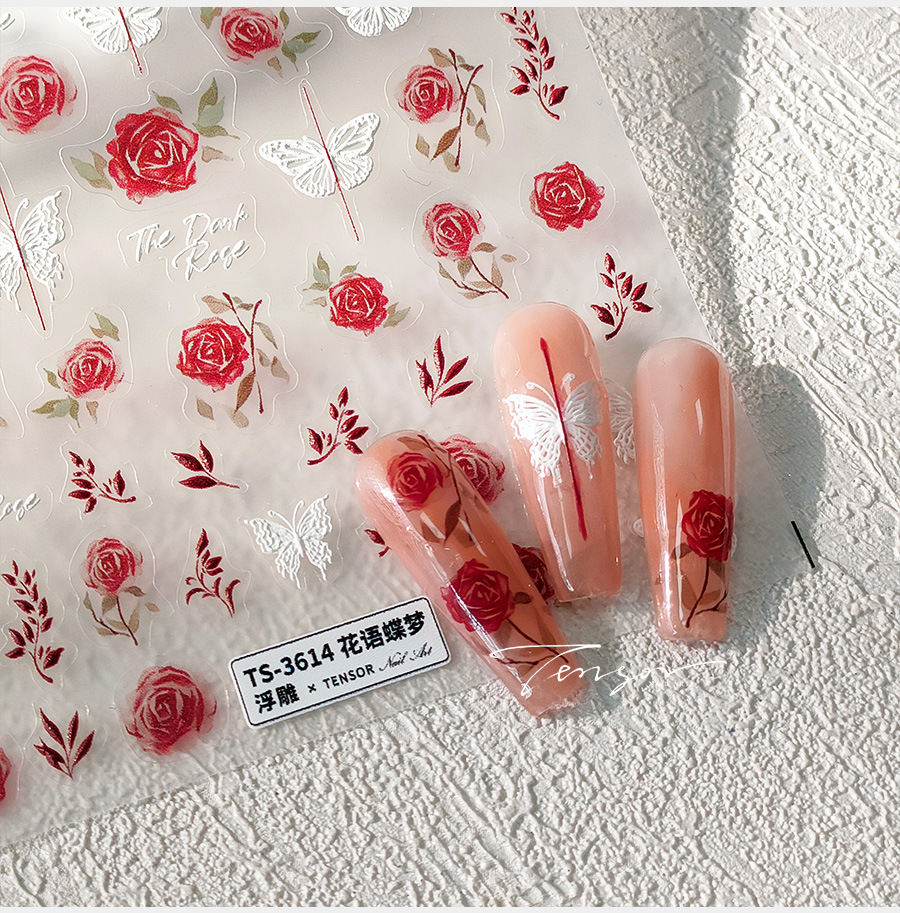 TENSOR 새로운 공예 빛 고급 나비 3 차원 네일 스티커 접착 네일 스티커 보석 TS-3614 꽃 언어 나비 꿈
