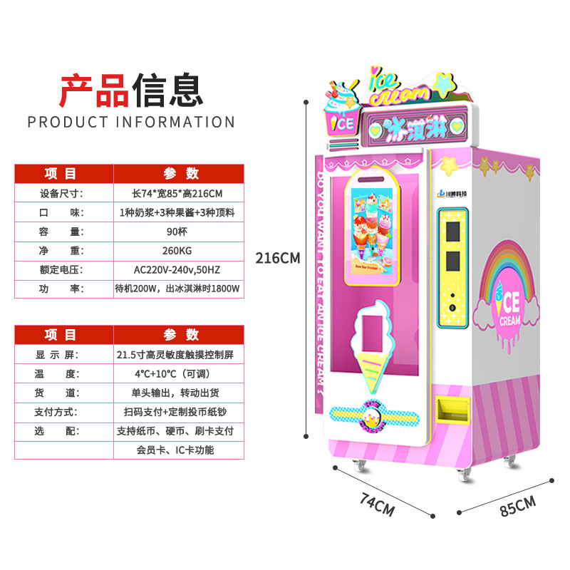 양만 지능형 자동 아이스크림 기계 실속 무인 셀프 서비스 아이스크림 콘 아이스크림 기계 상업스토어 가기