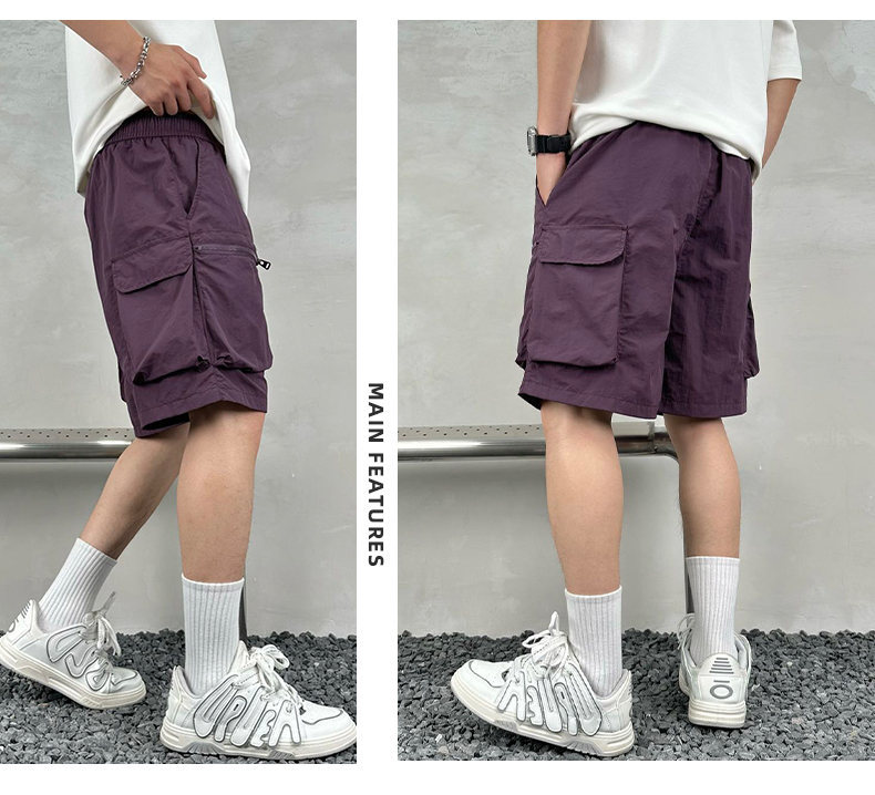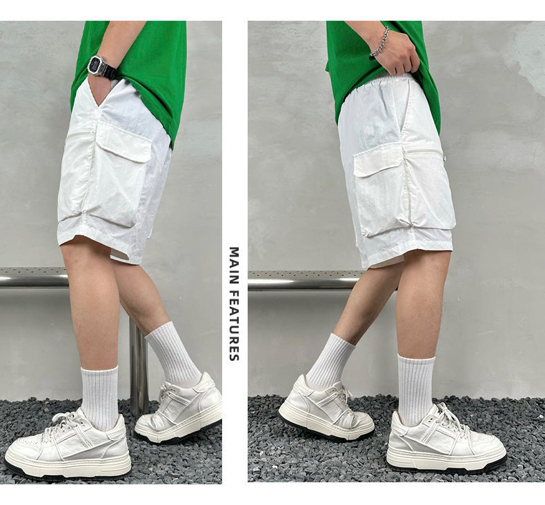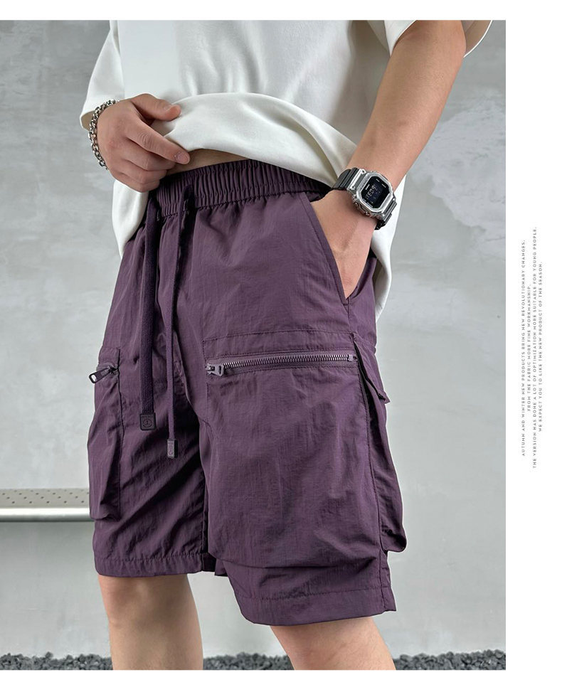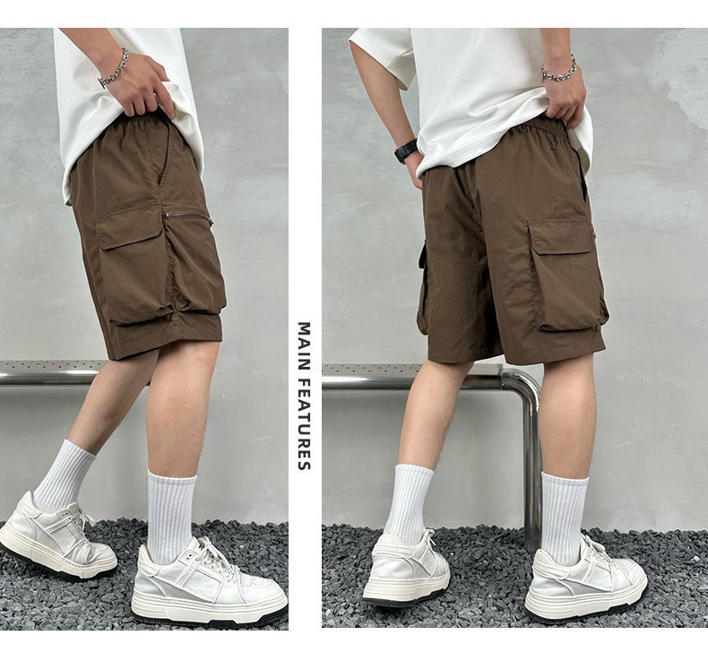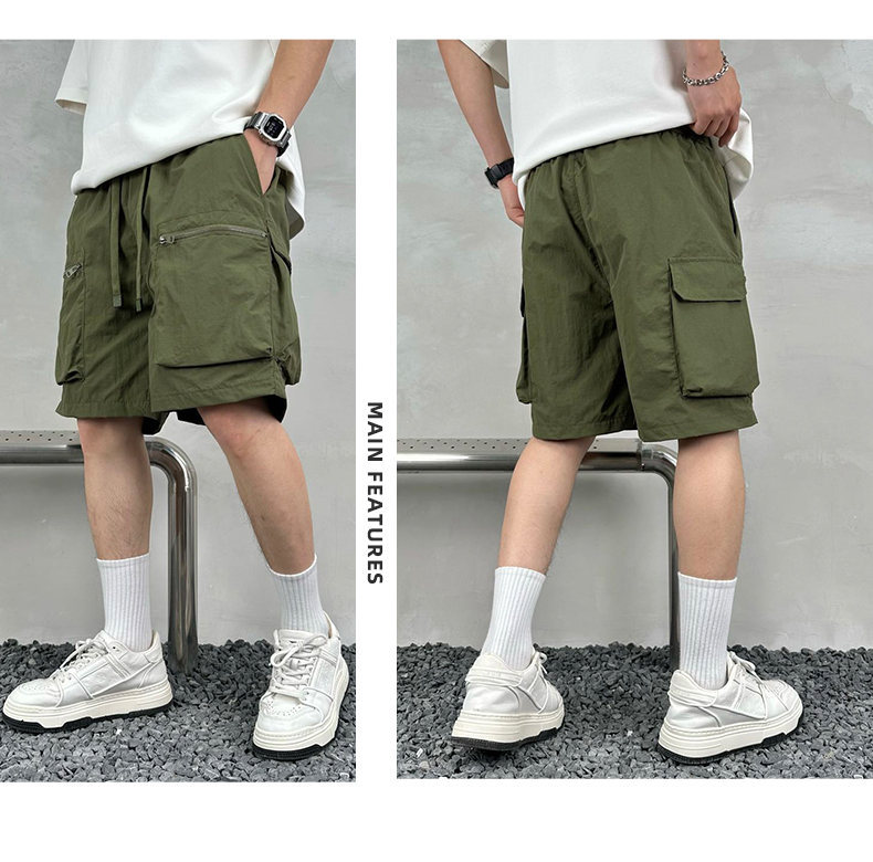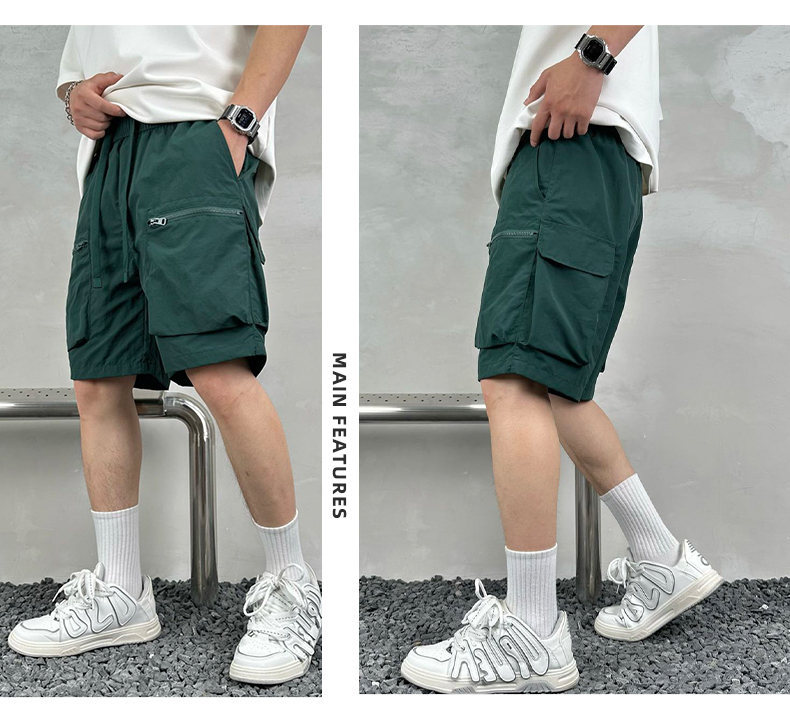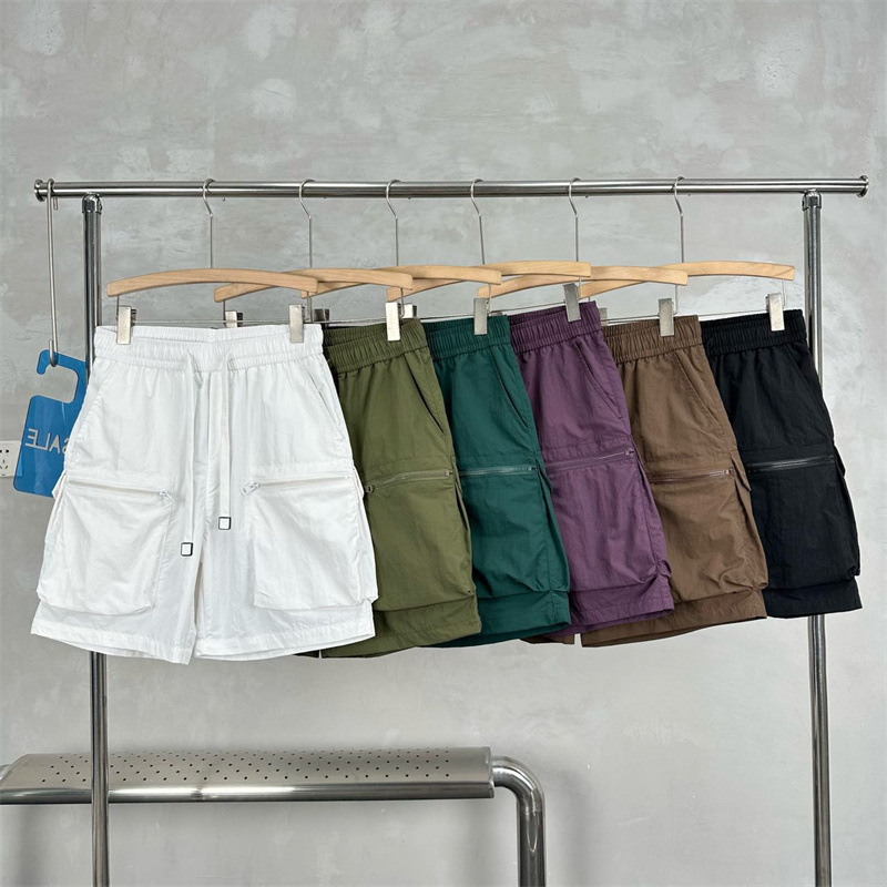 빠른 건조 여름 멀티 포켓 얇은 단색 간단한 느슨한 작업복 반바지 남성 5 점 캐주얼 패션 브랜드 스포츠 바지스토어 가기