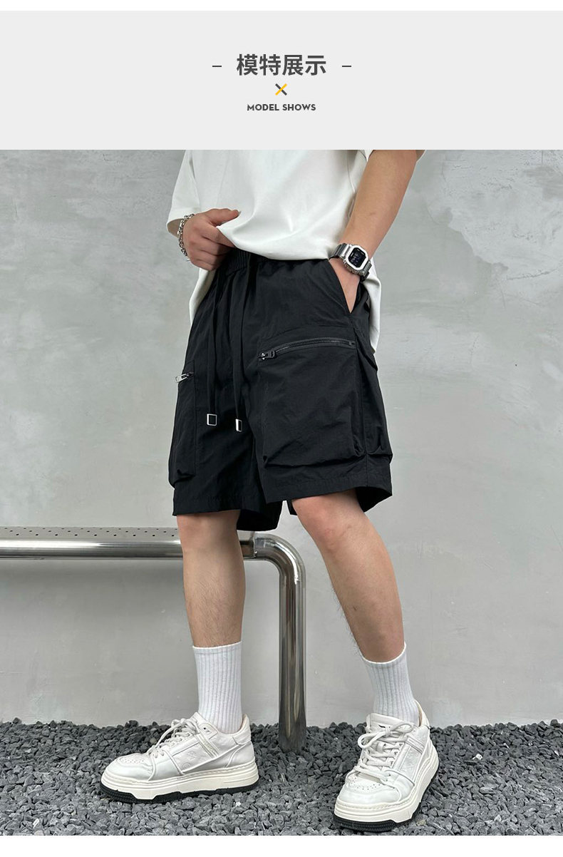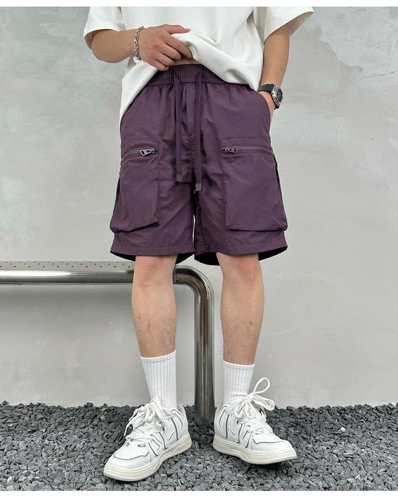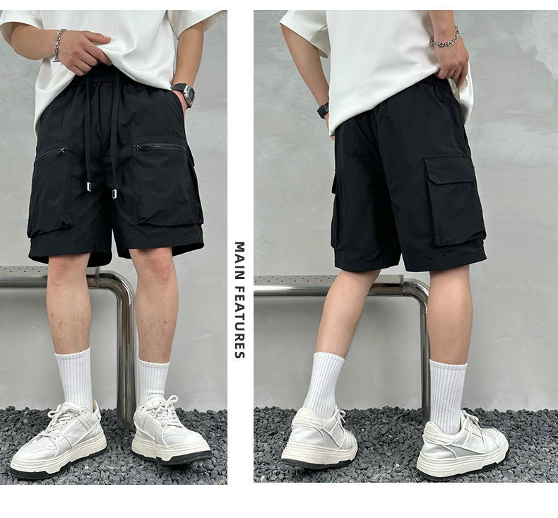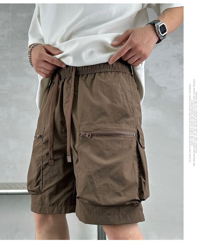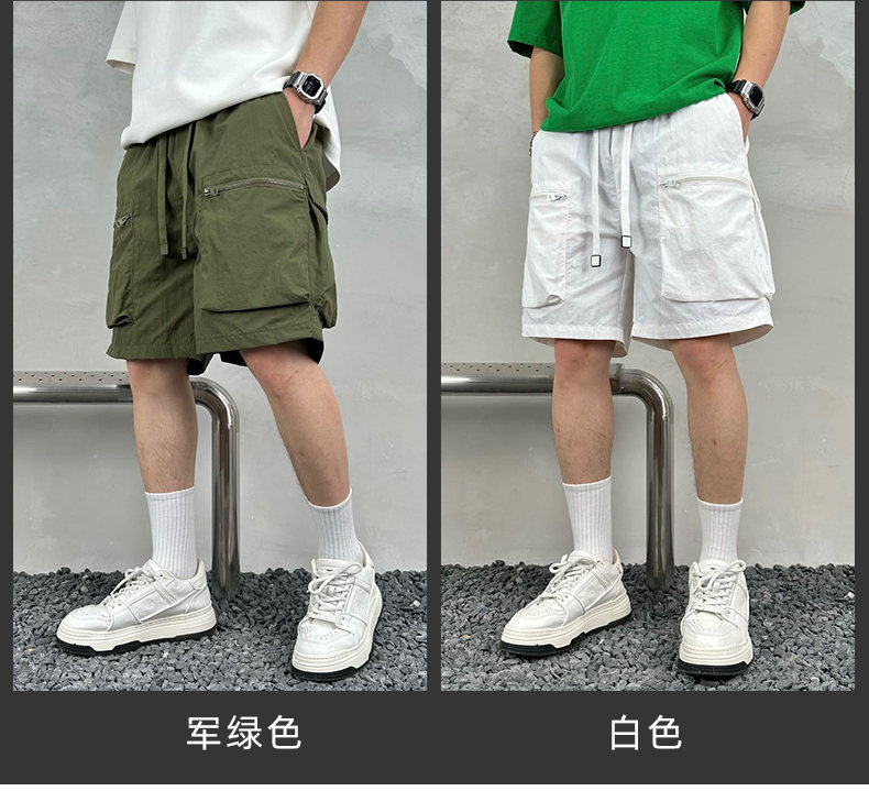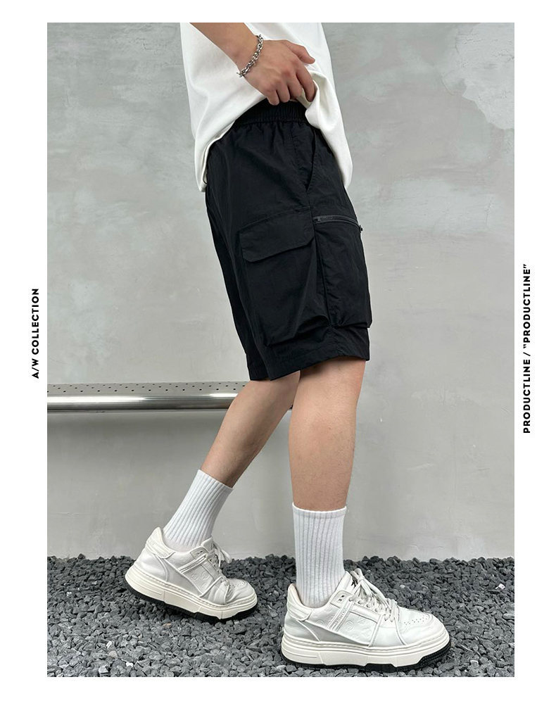 빠른 건조 여름 멀티 포켓 얇은 단색 간단한 느슨한 작업복 반바지 남성 5 점 캐주얼 패션 브랜드 스포츠 바지스토어 가기