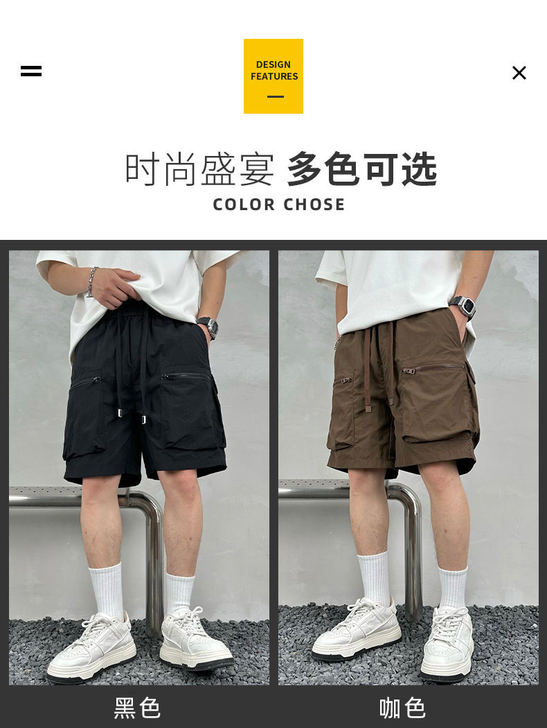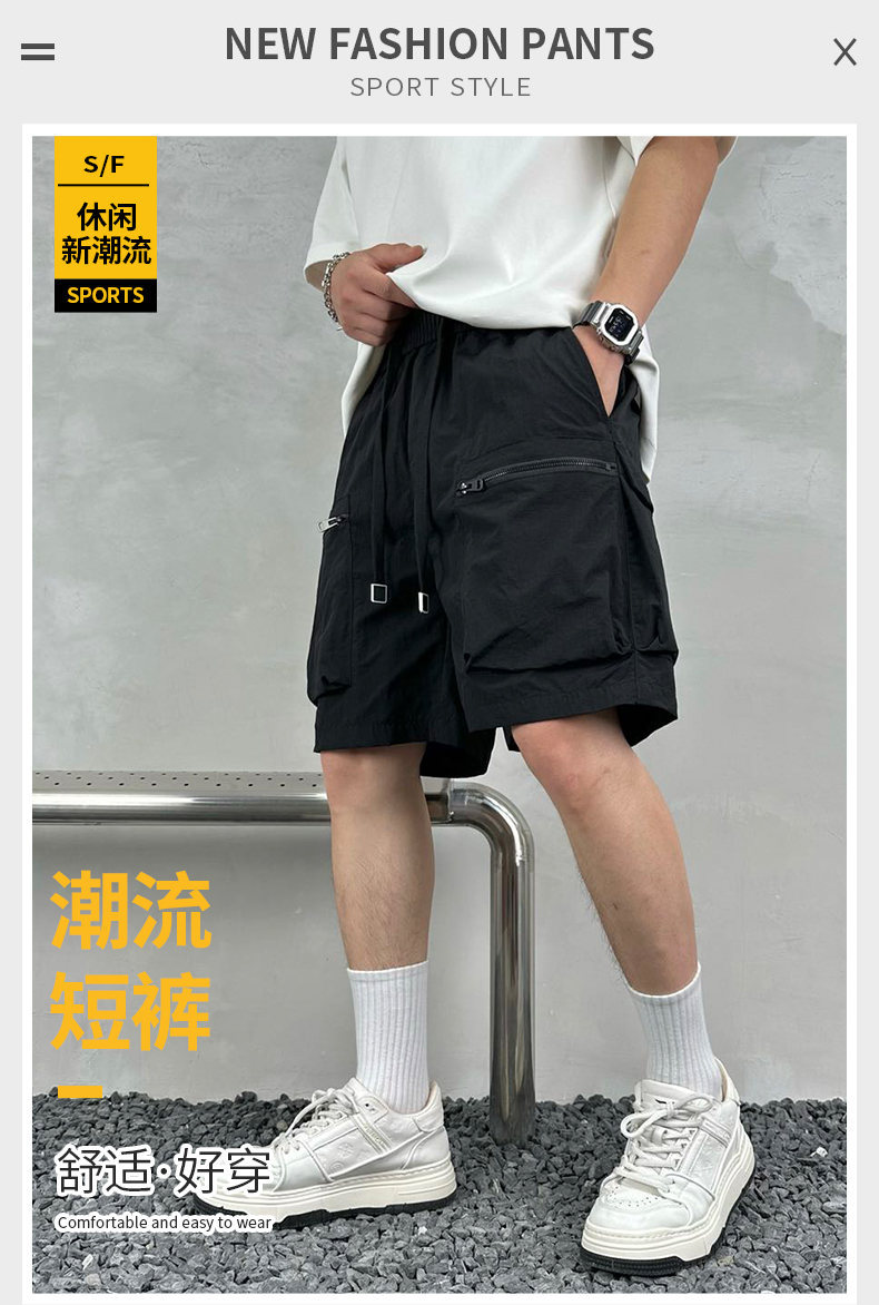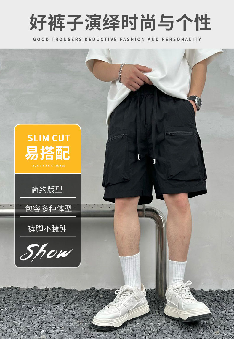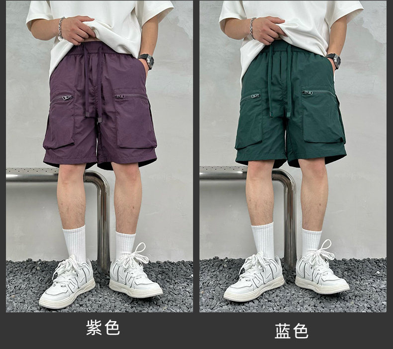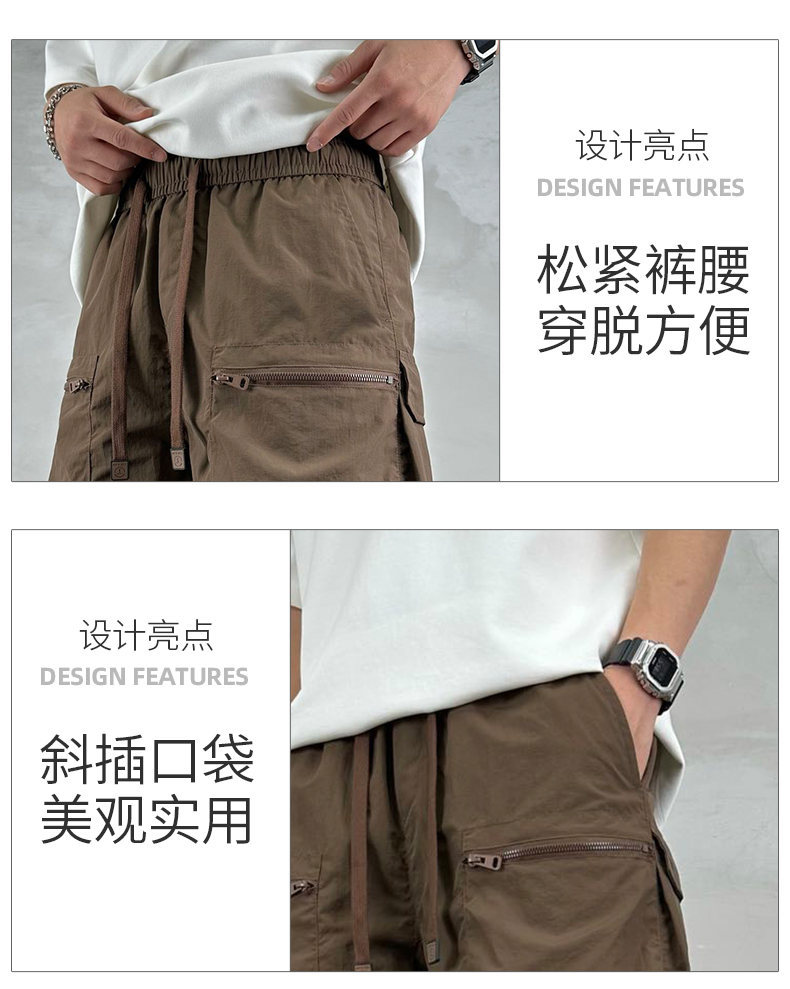 빠른 건조 여름 멀티 포켓 얇은 단색 간단한 느슨한 작업복 반바지 남성 5 점 캐주얼 패션 브랜드 스포츠 바지스토어 가기