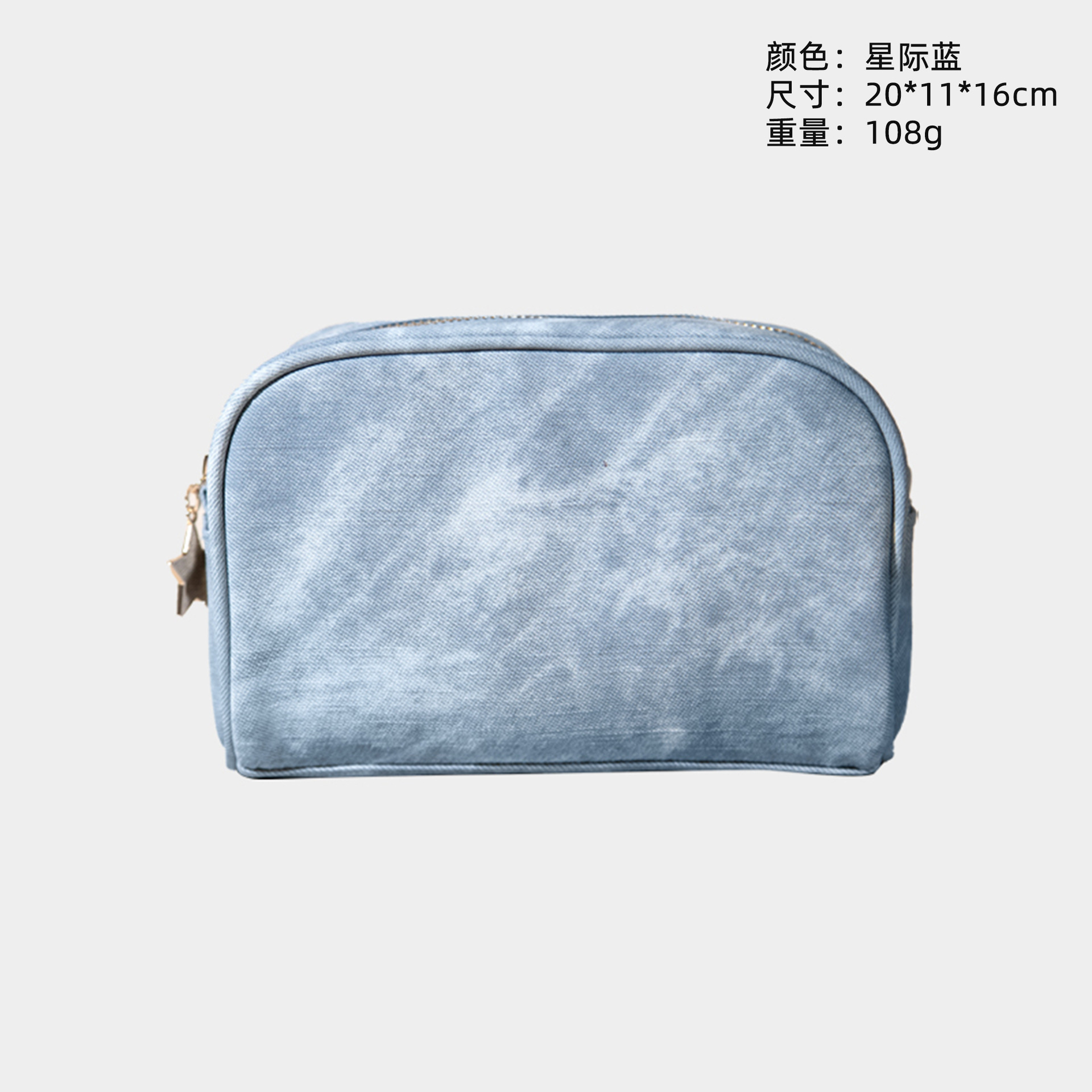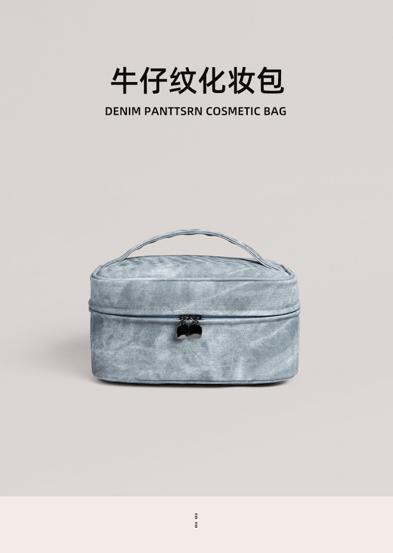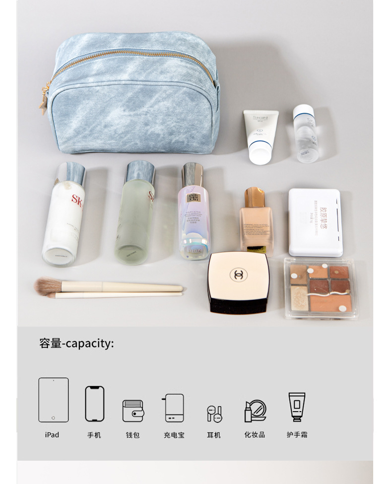 새로운 더블 레이어 데님 패턴 화장품 가방 여행 휴대용 저장 가방 간단하고 실용적인 화장실 가방 화장품 가방 대용량스토어 가기