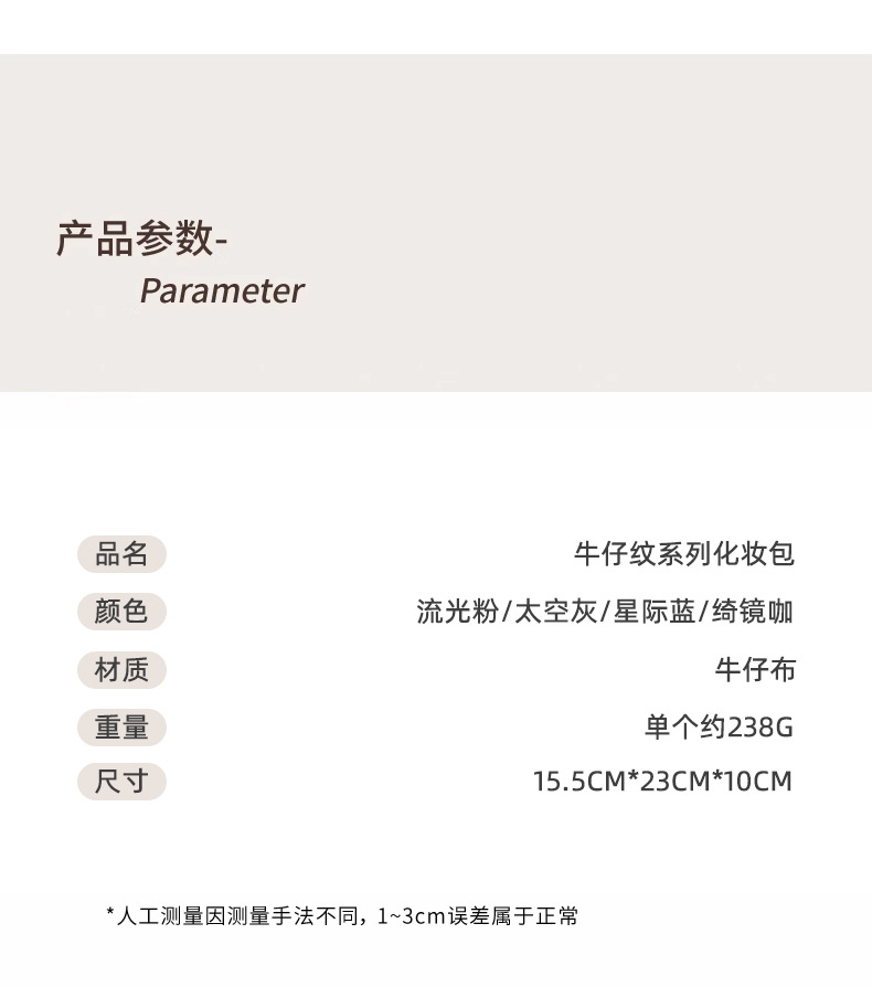 새로운 더블 레이어 데님 패턴 화장품 가방 여행 휴대용 저장 가방 간단하고 실용적인 화장실 가방 화장품 가방 대용량