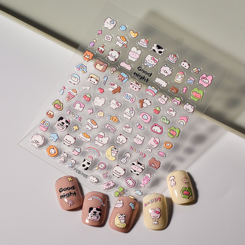 작은 빨간 책 같은 귀여운 암소 동물 구호 스티커 소녀 심장 매니큐어 diy 장식 스티커