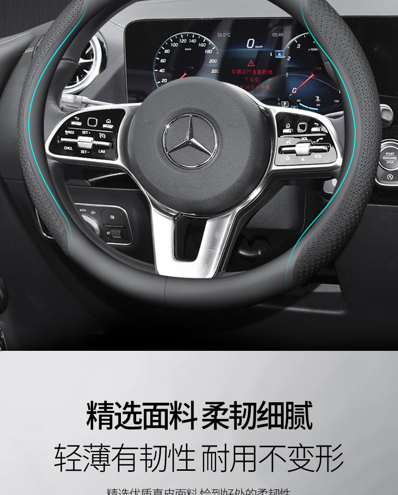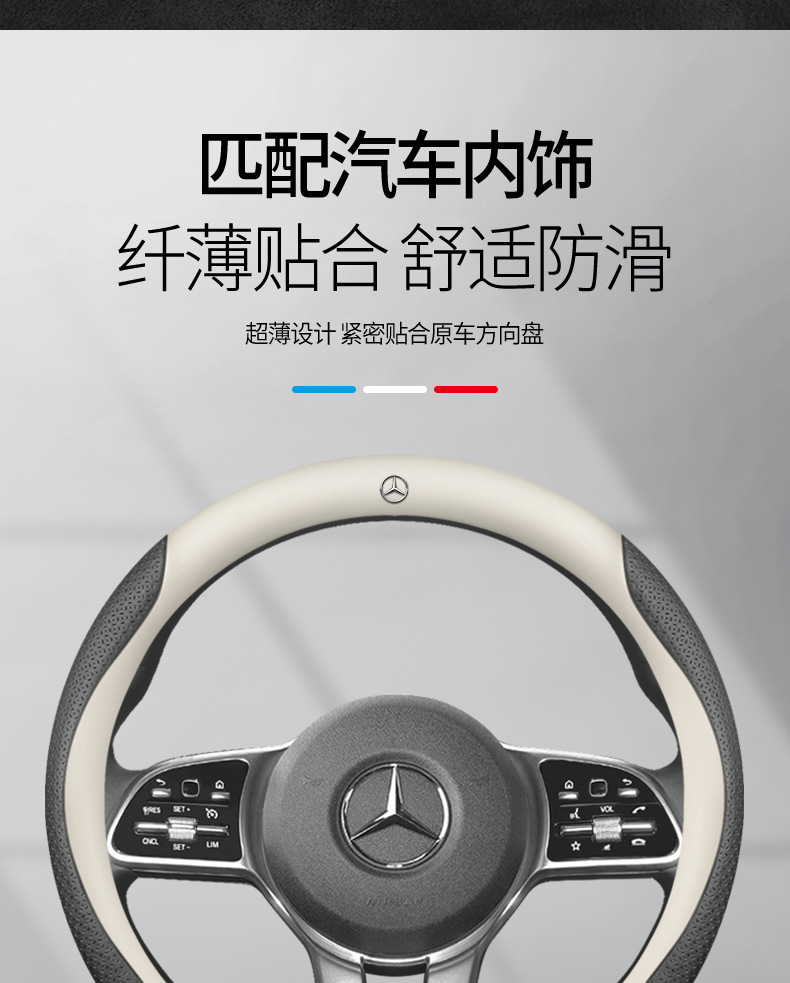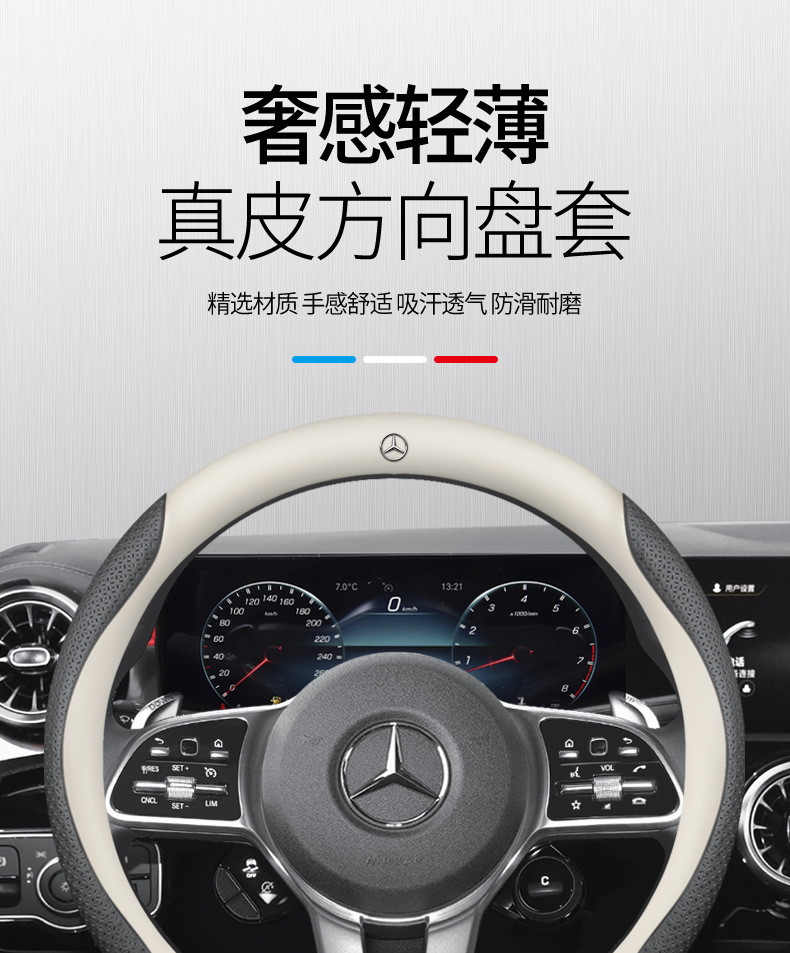 적용 가능한 메르세데스-벤츠 시리즈 자동차 스티어링 휠 C200C260L E260E300L GLA200 미끄럼 방지 가죽 핸들 커버
