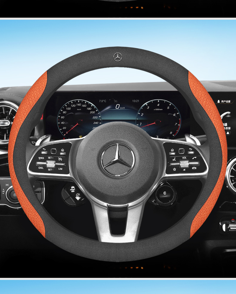 • 메르세데스-벤츠 스웨이드 블랙 + 엠보싱 오렌지 D 자형
