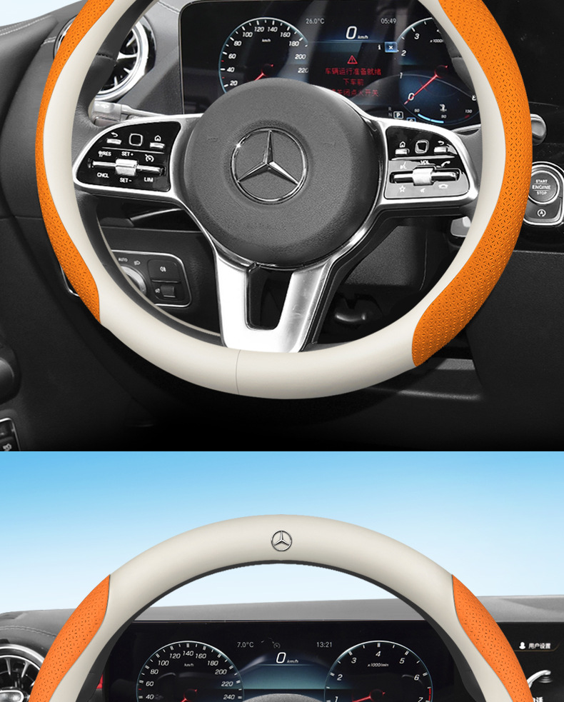 • 메르세데스-벤츠 가죽 화이트 + 엠보싱 오렌지 라운드