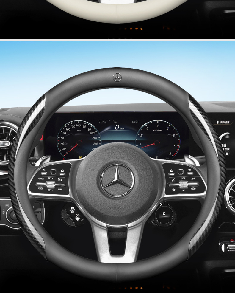• 메르세데스-벤츠 가죽 블랙 + 광택 탄소 섬유 패턴 라운드