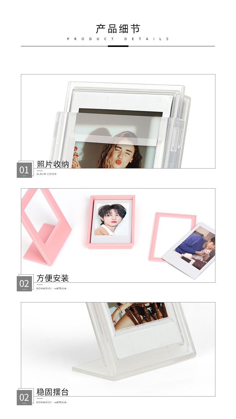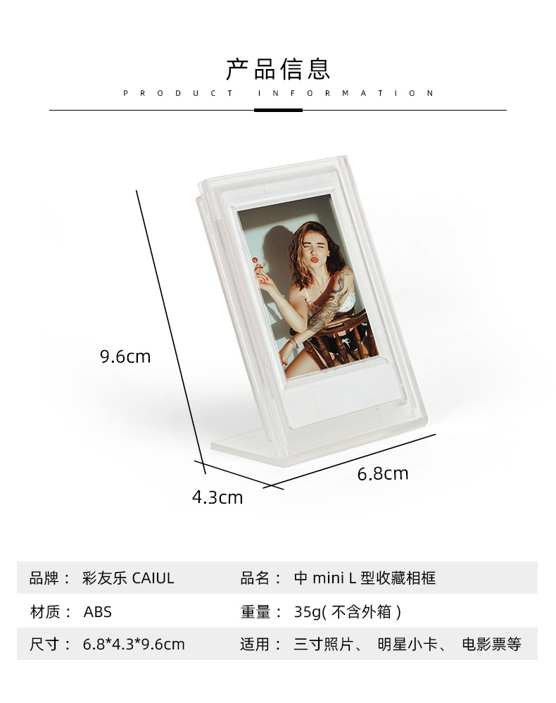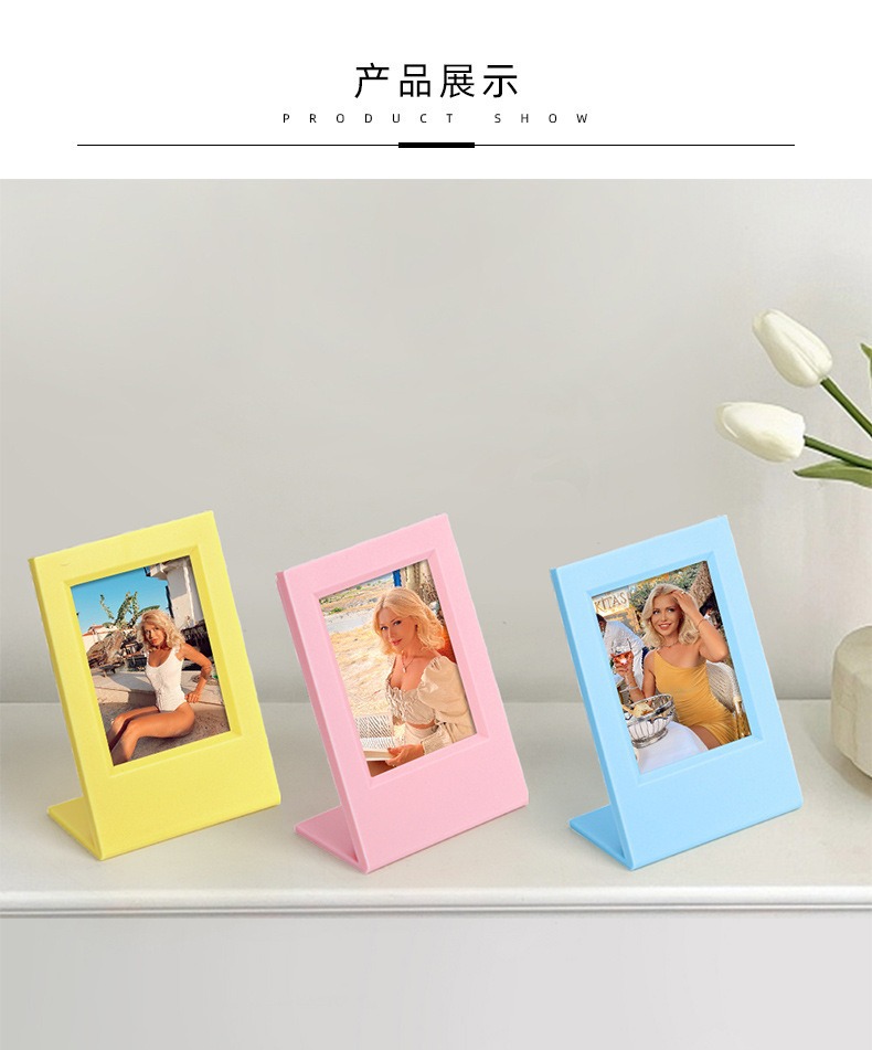 彩色亚克力拍立得照片3寸相框 迷你立式L型收纳展示通用相框摆台