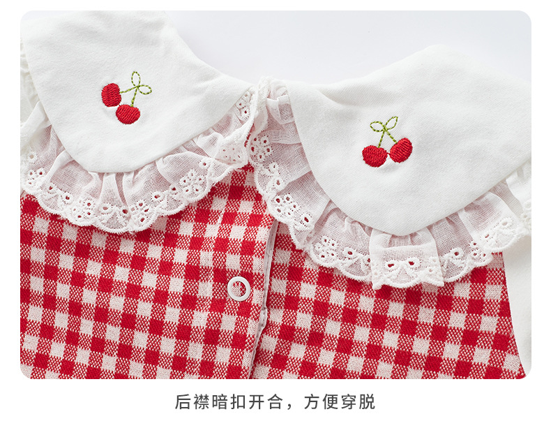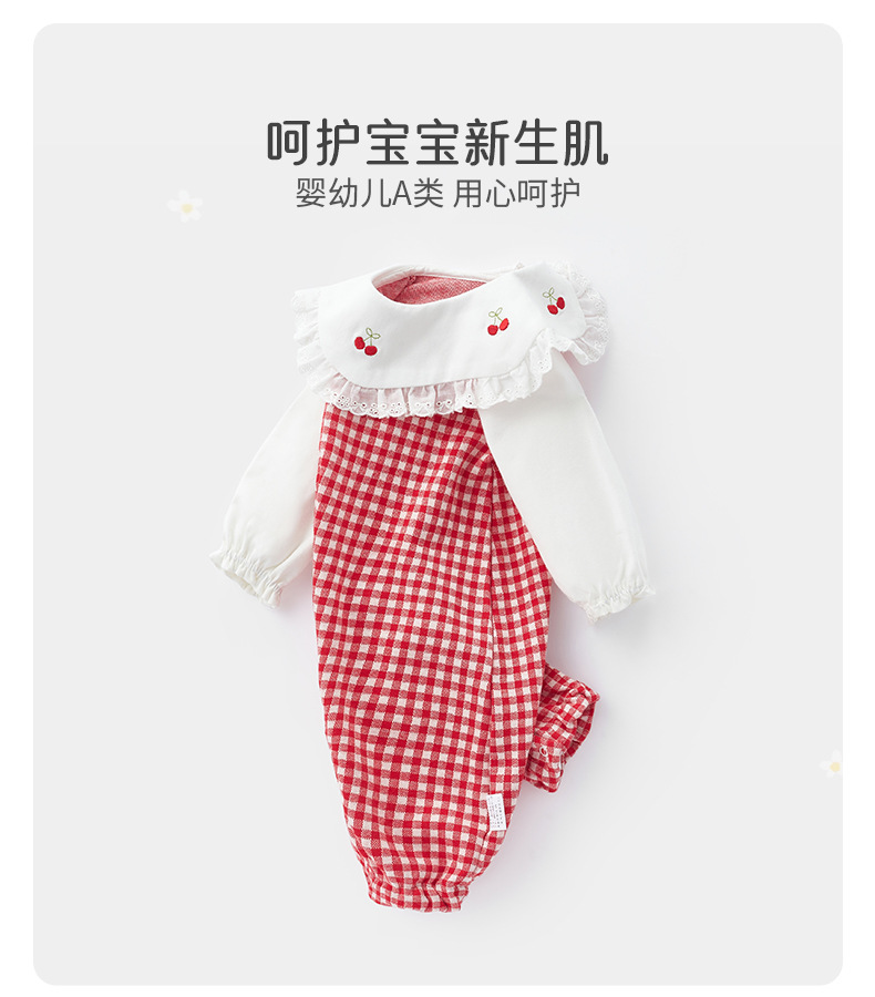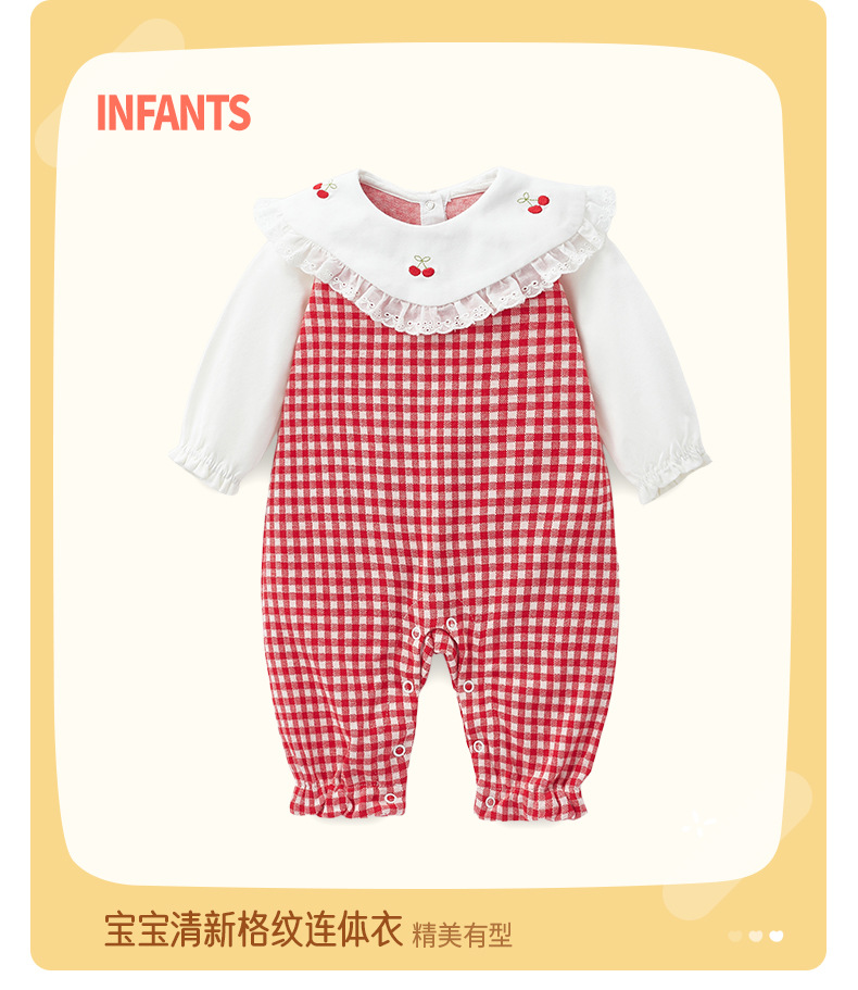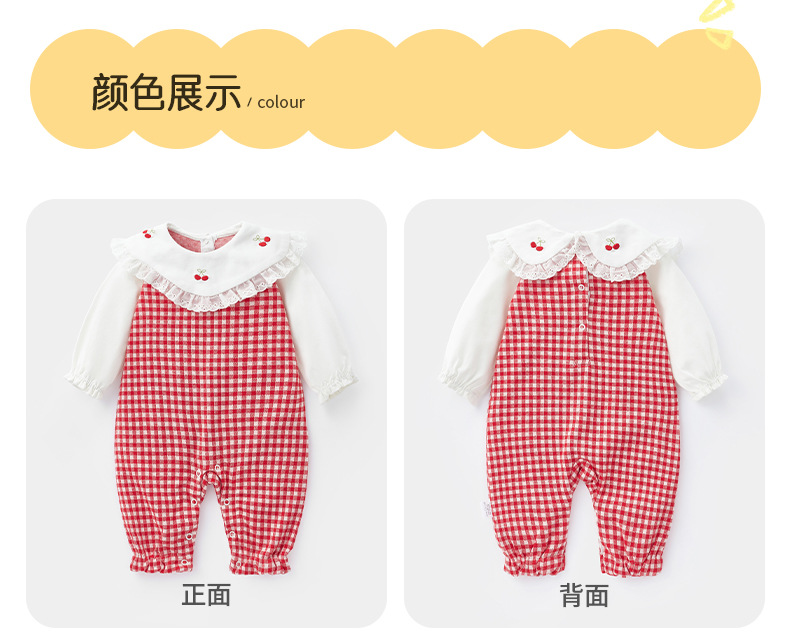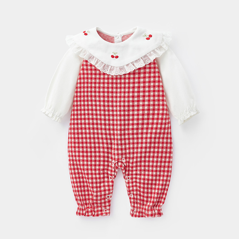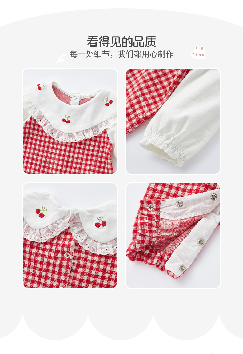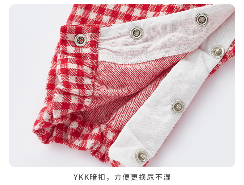 2024 봄 새로운 도착 점프 수트 아기 격자 무늬 점프 수트 신생아 아기 소녀 긴 소매 세트 봄 및 가을 등반 9501