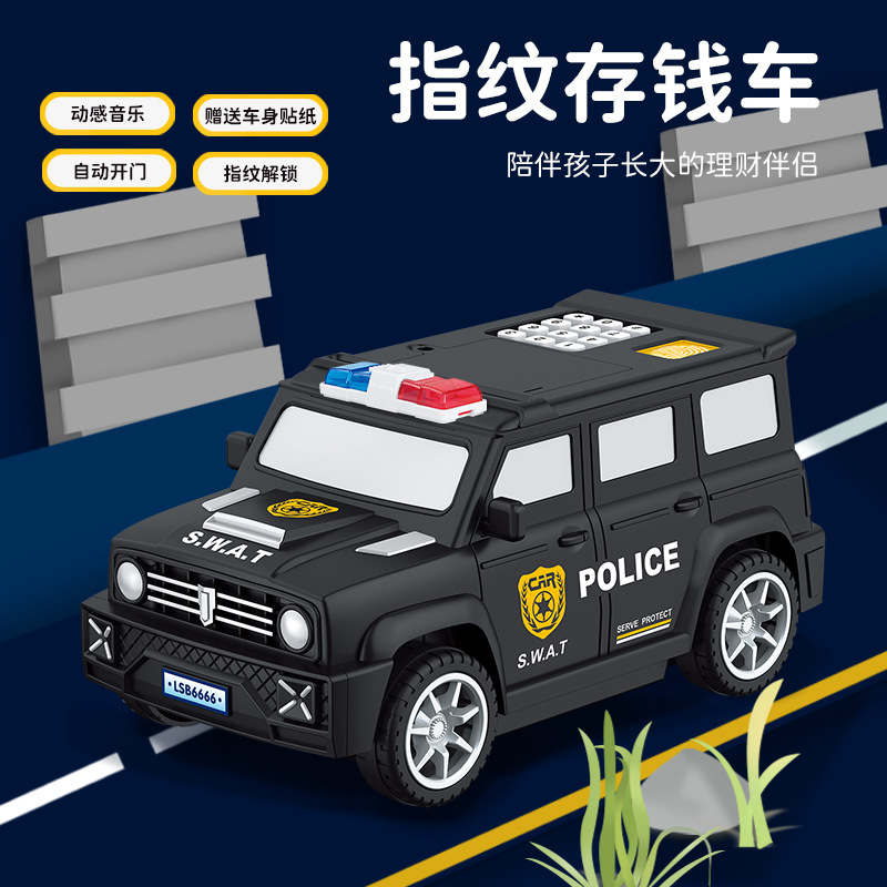 만화 경찰 자동차 돼지 저금통 장난감 장식 아이 암호 돼지 저금통 어린이 돼지 저금통 지문 휴일 선물