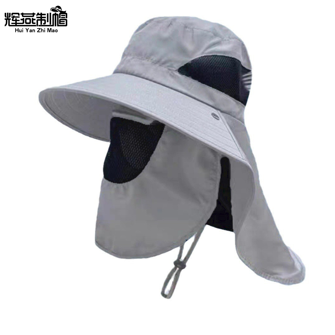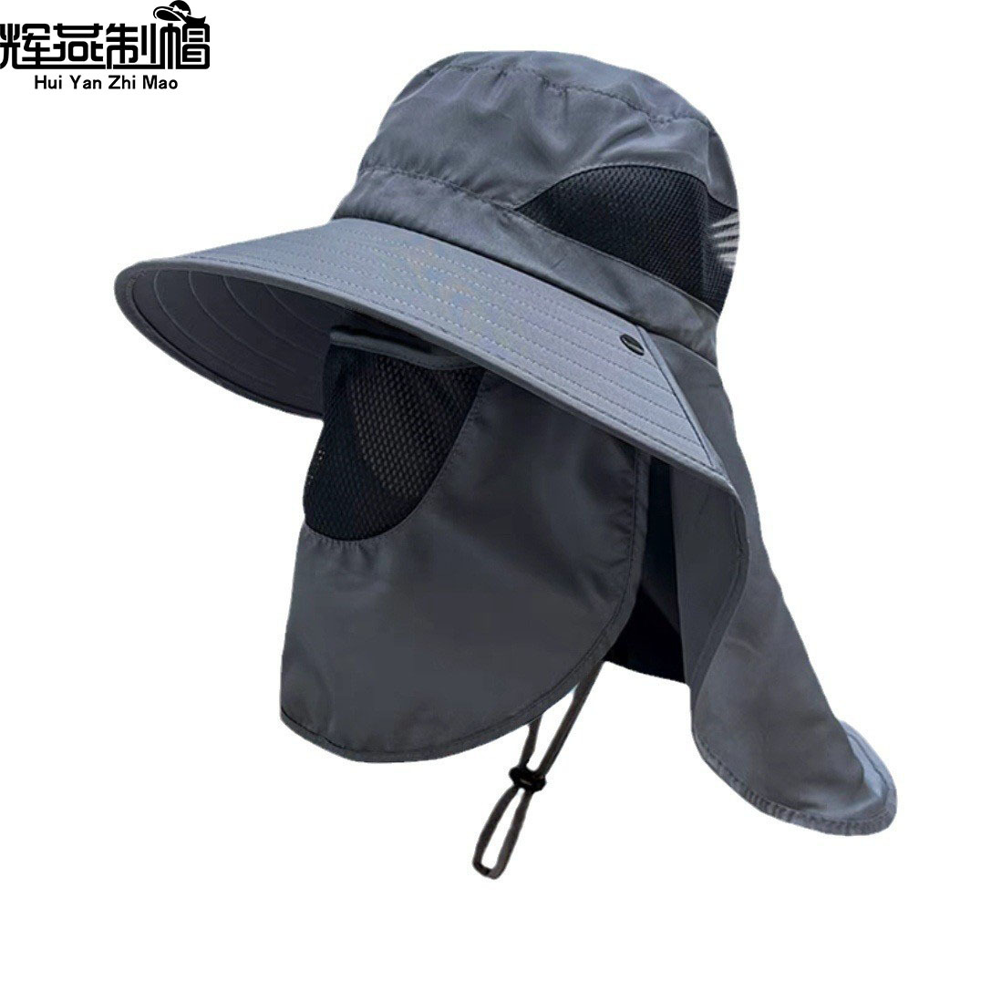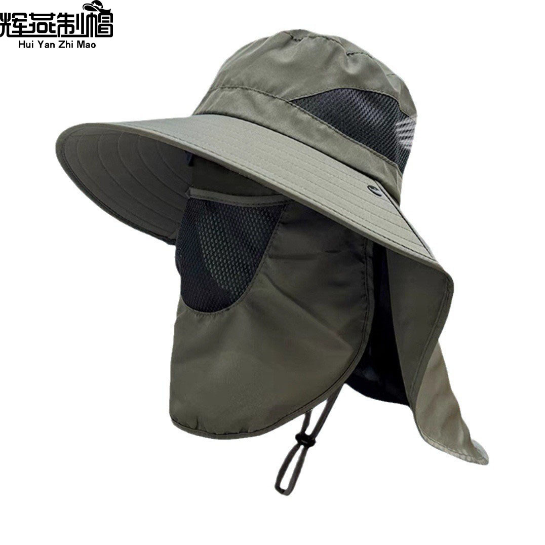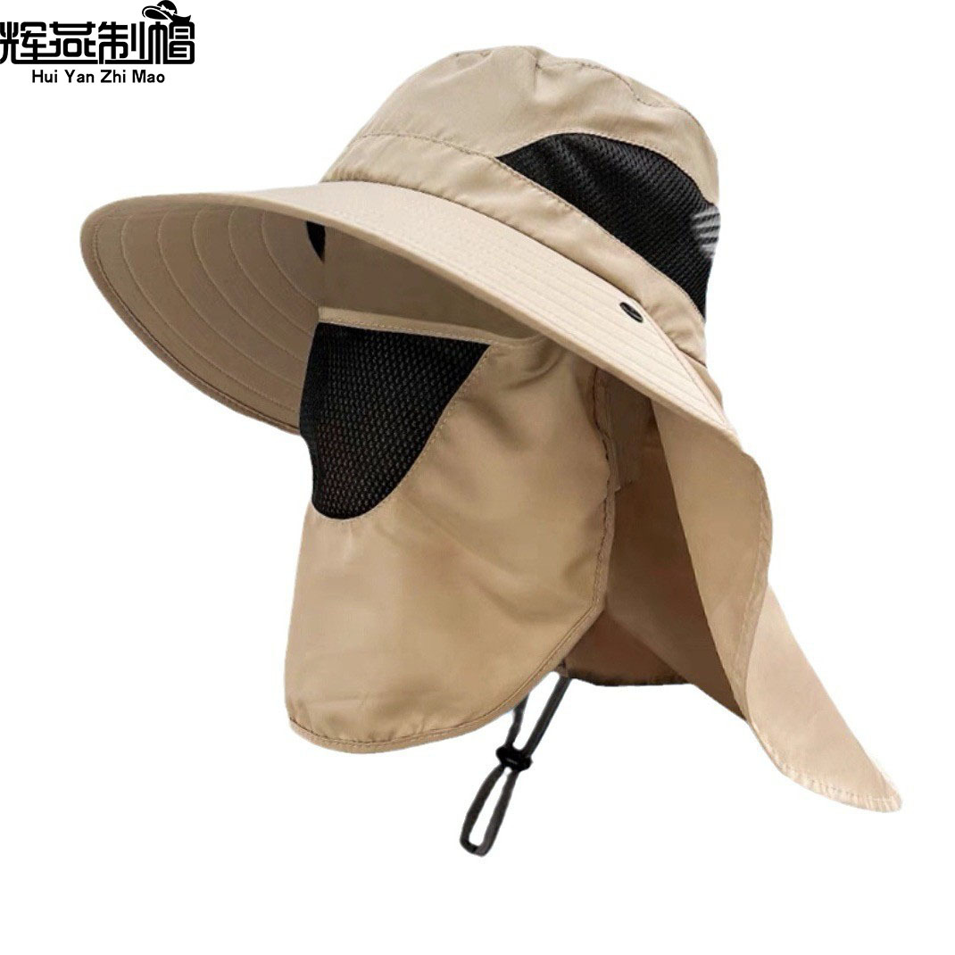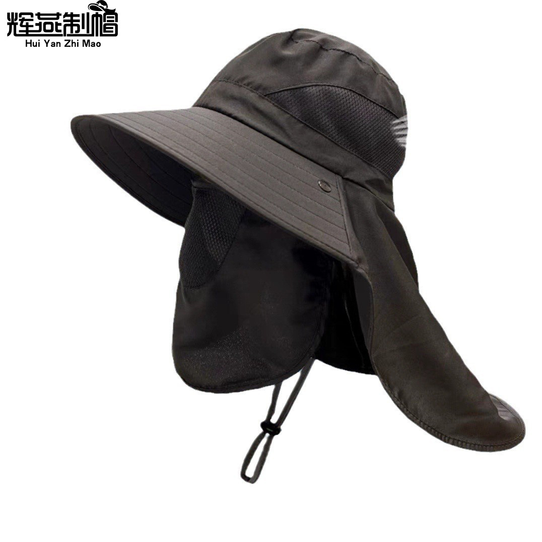 防紫外线遮阳帽男士夏季户外防晒帽大檐太阳渔夫帽遮脸护颈钓鱼帽