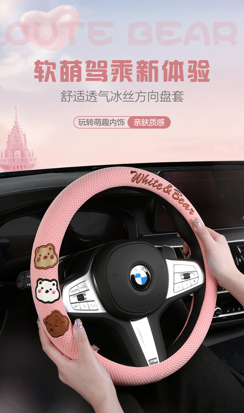 새로운 통기성 땀 흡수 벌집 얼음 실크 자동차 핸들 커버 장식 용품 도매 드롭 배송 고무 사계절 스티어링 휠 커버스토어 가기