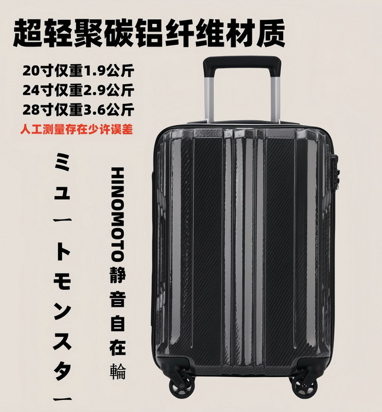 초경량 새로운 폴리 카본 알루미늄 섬유 수하물 음소거 유니버설 휠 트롤리 케이스 등록 위탁 여행 가방 남성과 여성스토어 가기
