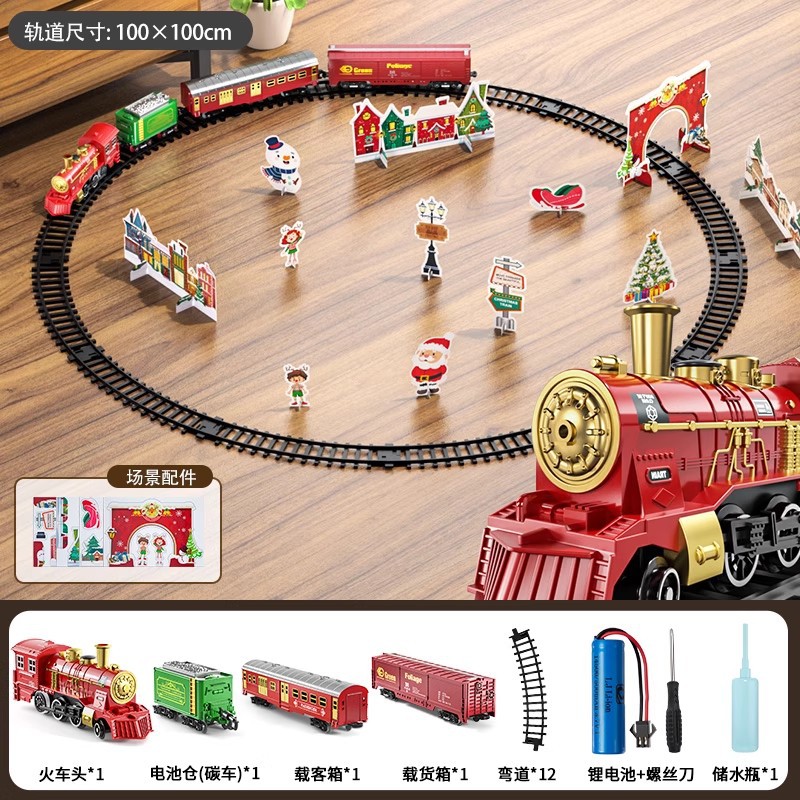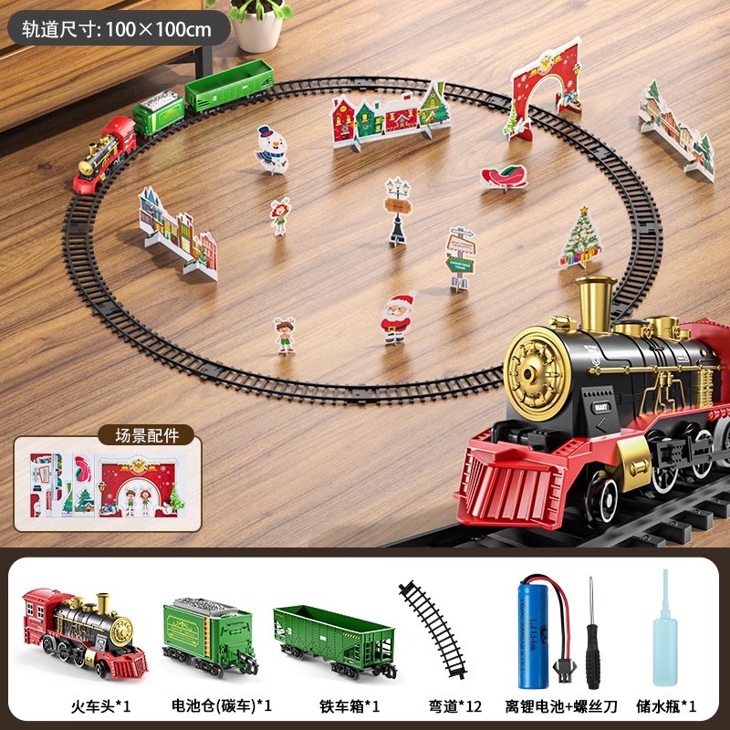 • 충전식 | 스팀펑크 복고풍 컬러 박스 포장 | 기차 [3량] + 100*100cm 레일 + 배경 세트
