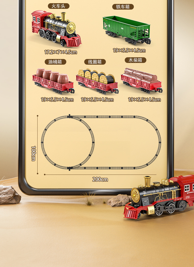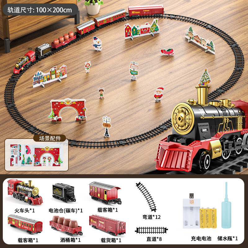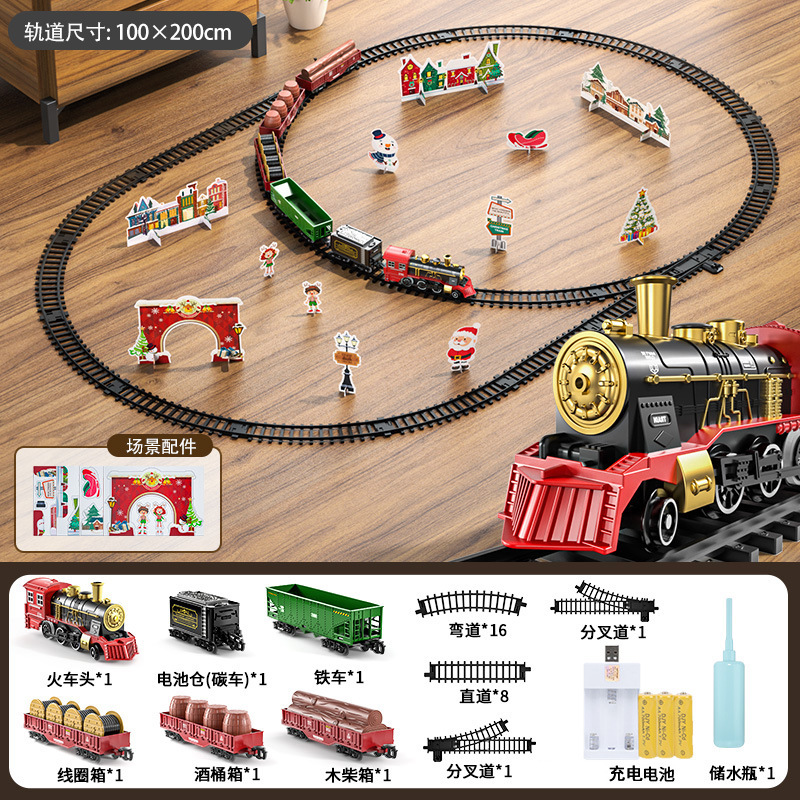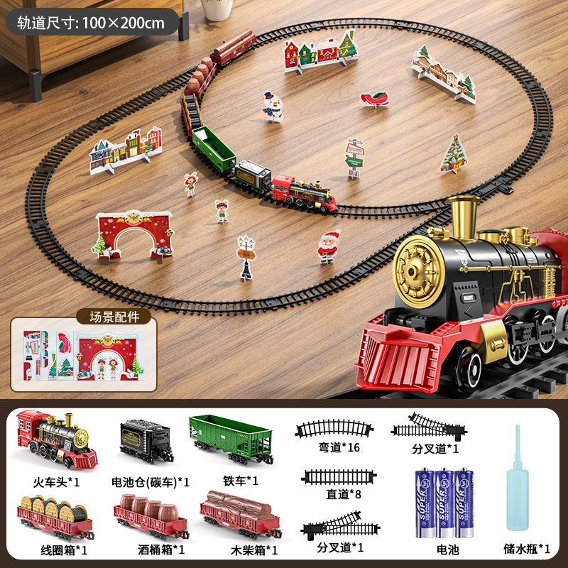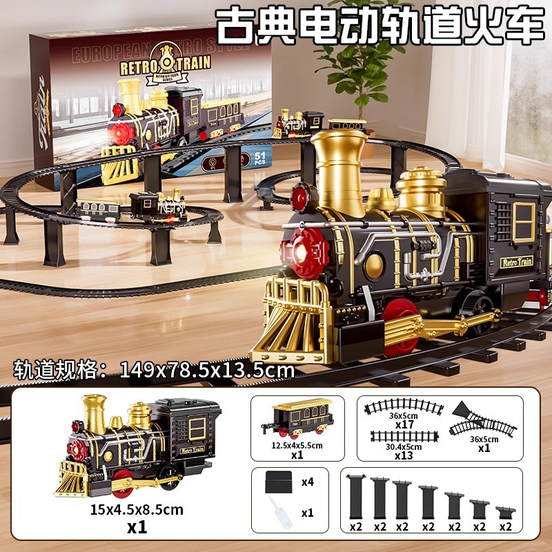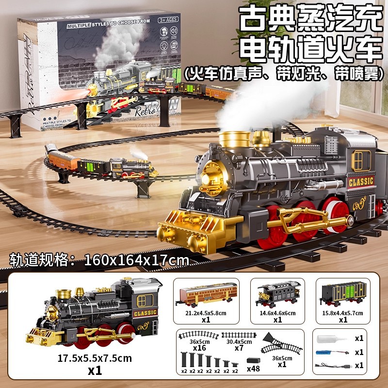 • 충전식 | 스팀펑크 복고풍 칼라 박스 포장 | 기차 [3량] + 100*155cm 레일 + 배경 세트
