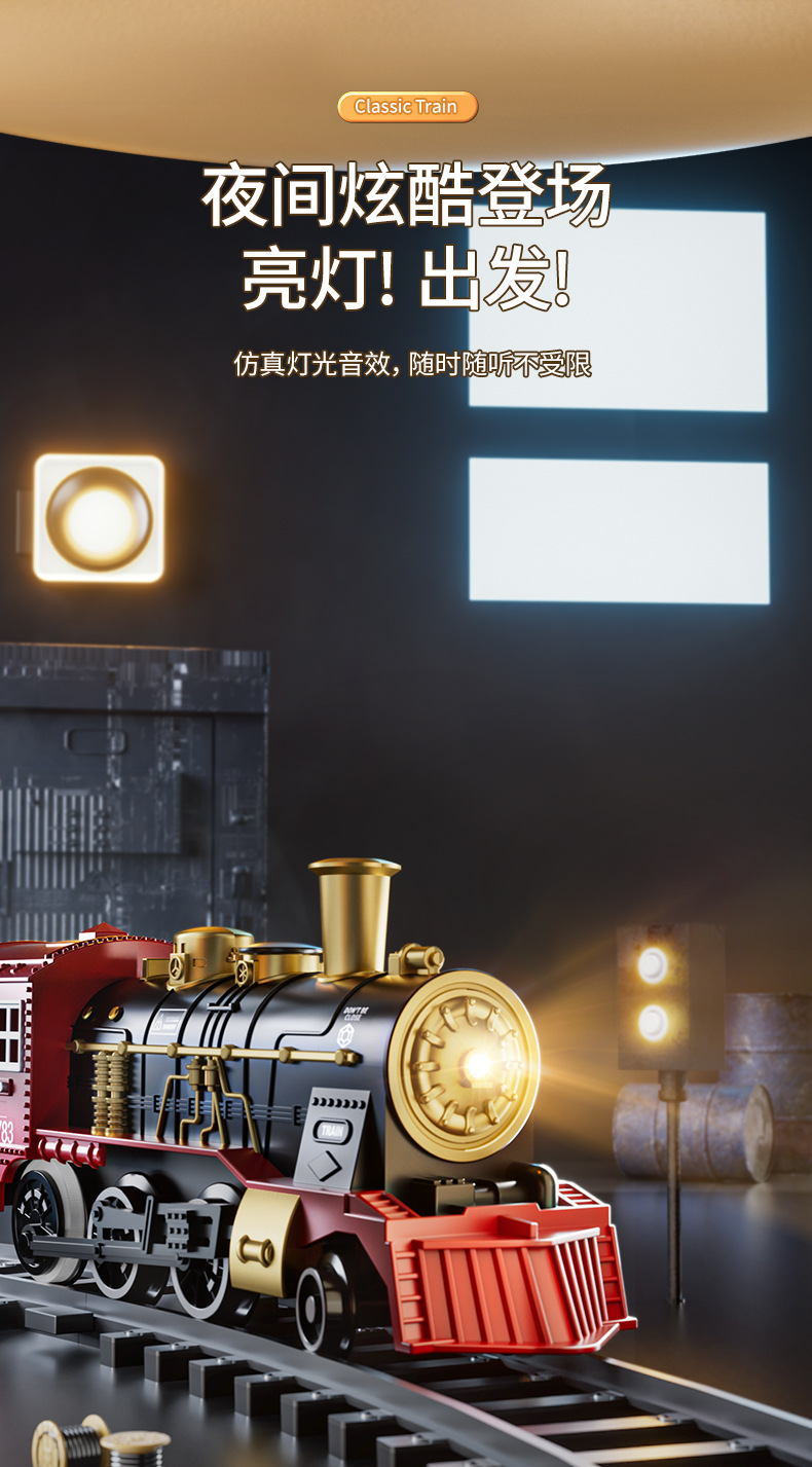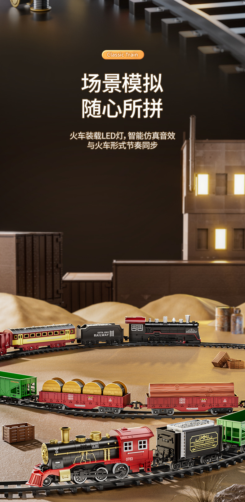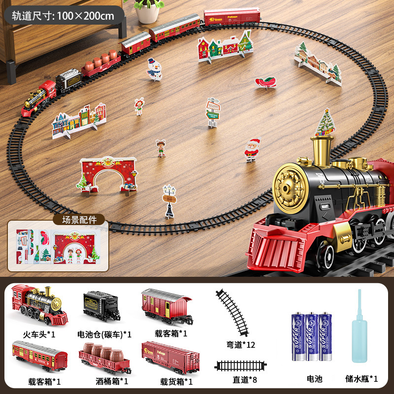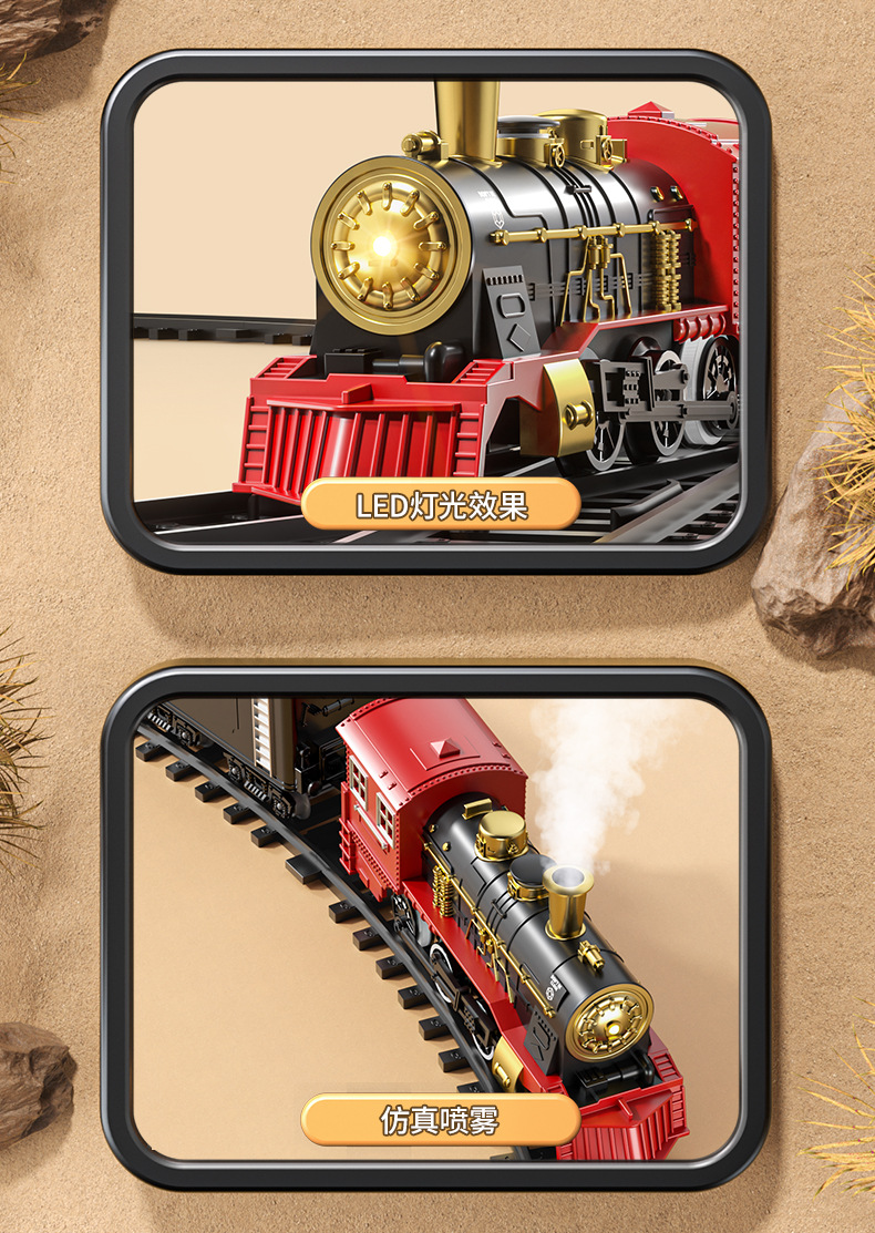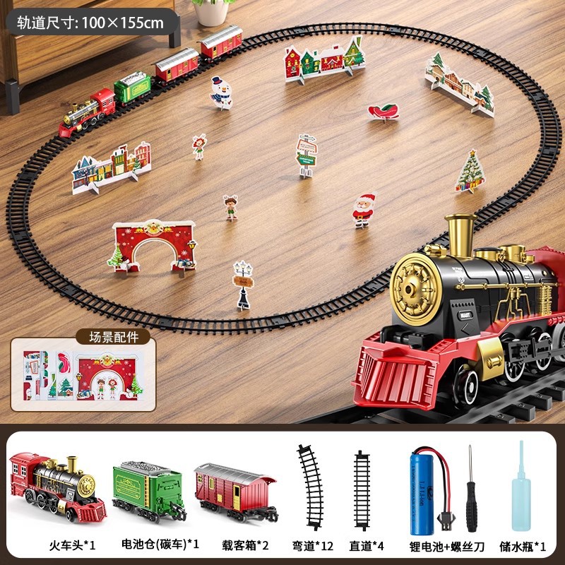 • 충전식 | 스팀펑크 복고풍 칼라 박스 포장 | 기차 [3량] + 100*155cm 레일 + 배경 세트
