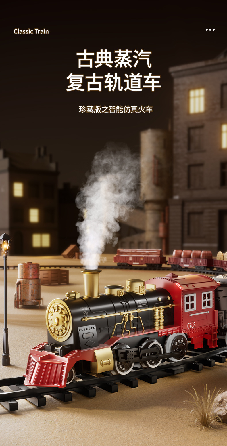• 충전식 | 스팀펑크 복고풍 컬러 박스 포장 | 기차 합금 [4량] + 100*100cm 레일 + 배경 세트