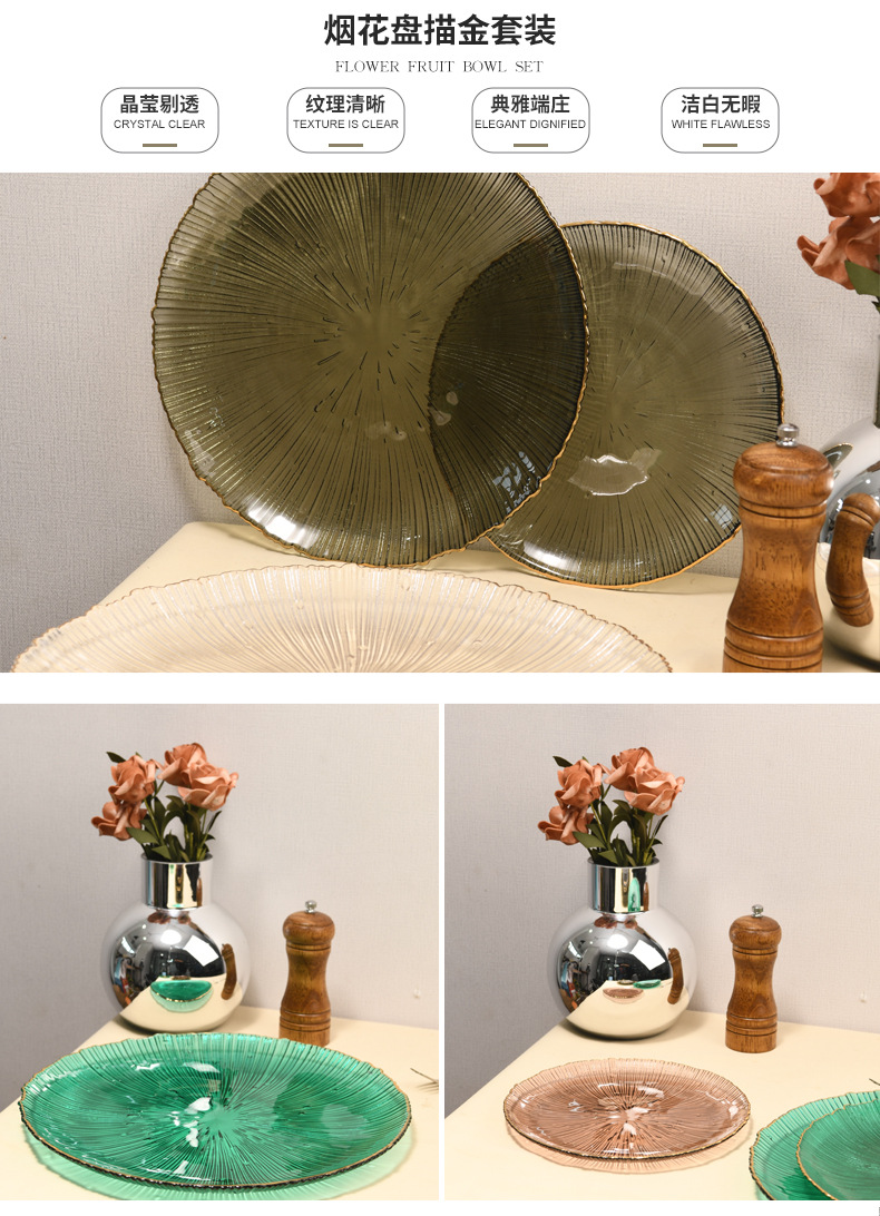 유럽식 가벼운 럭셔리 불꽃 놀이 골드 유리 과일 플레이트 가정용 높은 모양의 과일 디저트 플레이트 서양식 플레이트 세트 플레이트스토어 가기